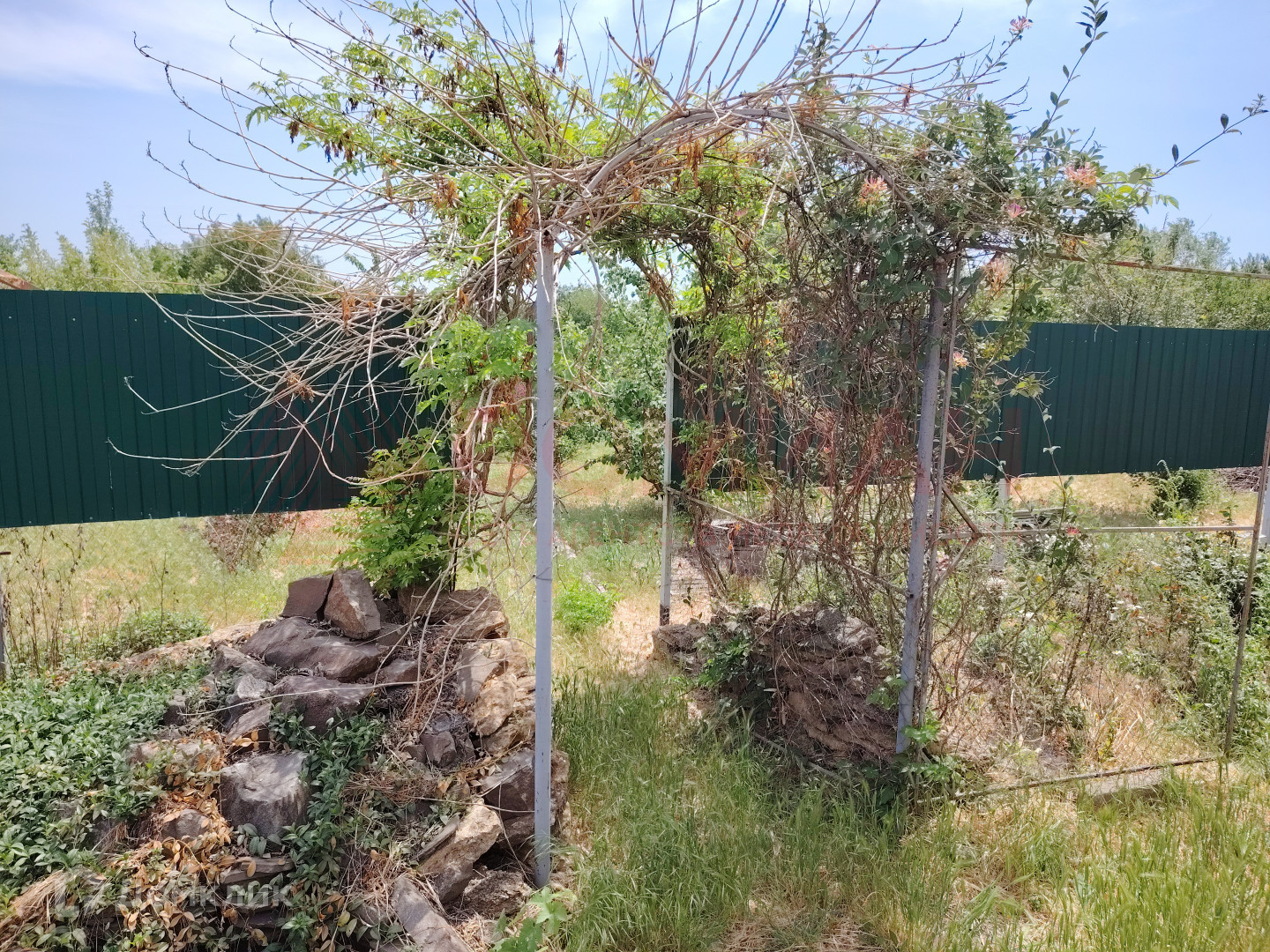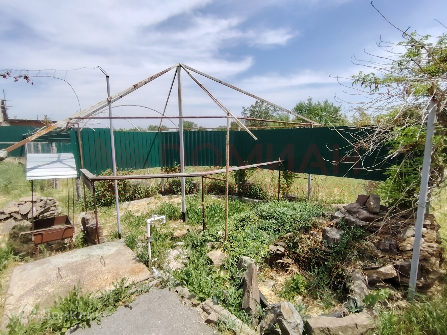 Есть зона барбекю с беседкой , огород с фруктовыми деревьями, балаган и теплица, в теплице большой подвал, есть ещё 2 комнаты под будущую баню (нужно доделать)