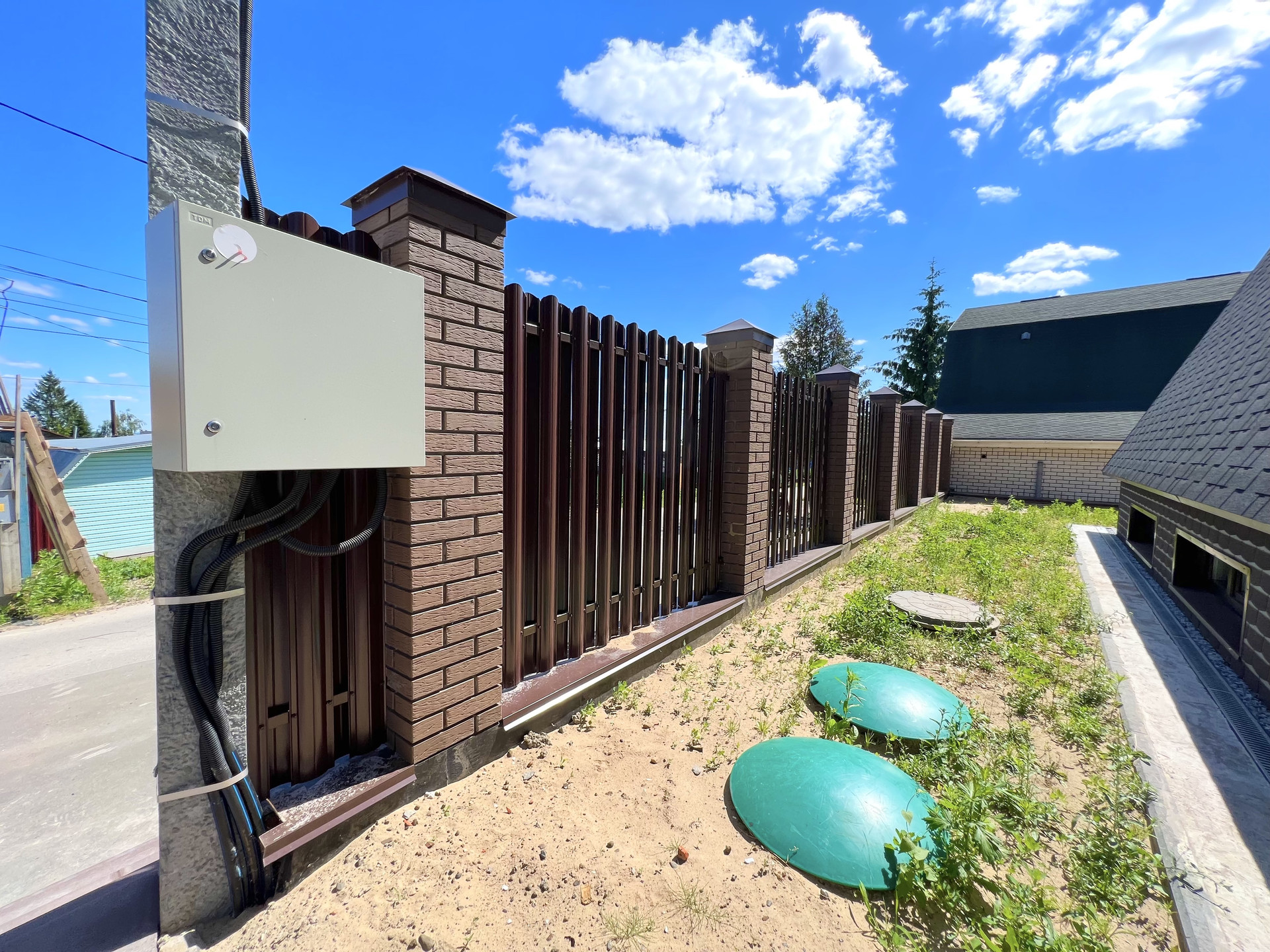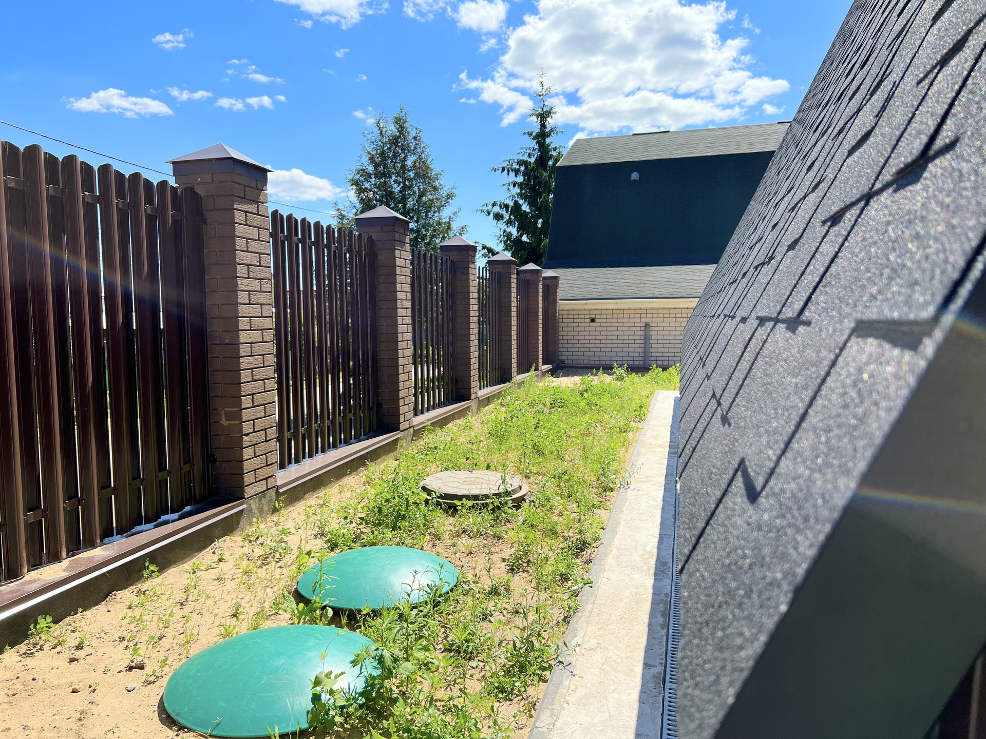 Дом полностью построен, газифицирован, остались только работы по внутренней отделке. Все коммуникации центральные: электричество - 15 кВт, вода и газ заведены в дом; канализация - биосептик третьего поколения без отходов и осадка. Цоколь выполнен из монолитного бетона толщиной 300 мм; уникальный дизайн крыши, покрыта дорогой гибкой черепицей; окна - алюминиевые витражи; фасад - лиственница натуральная.