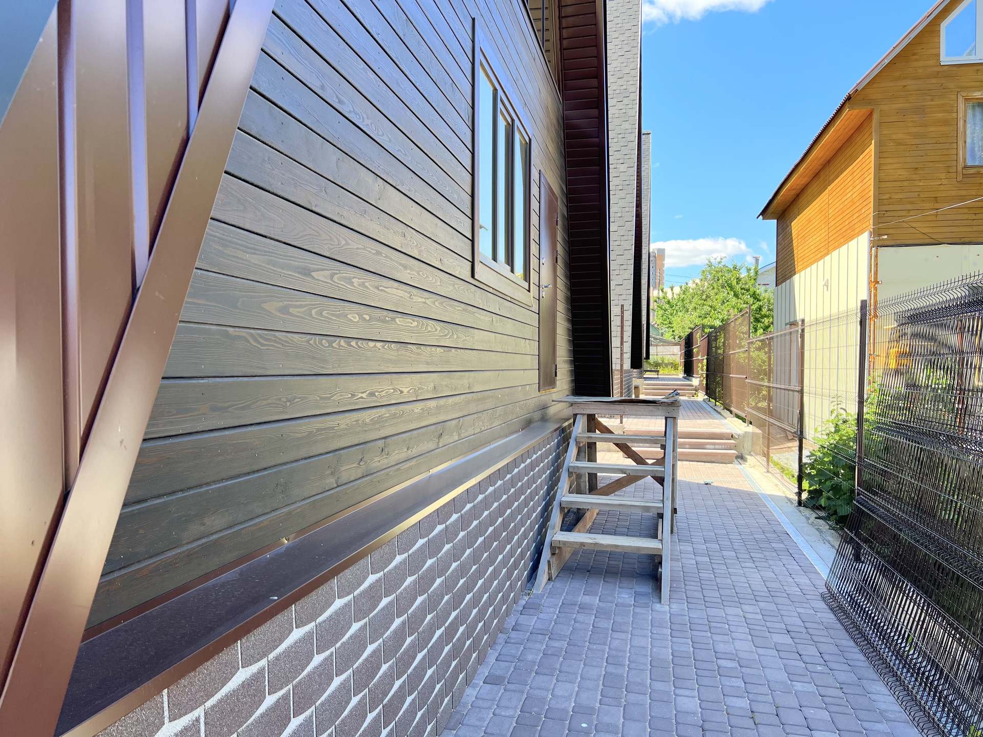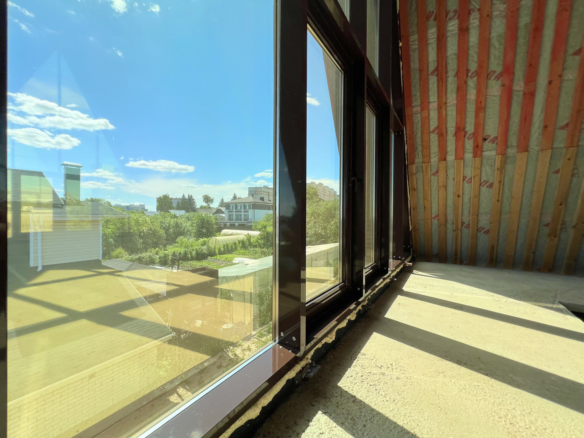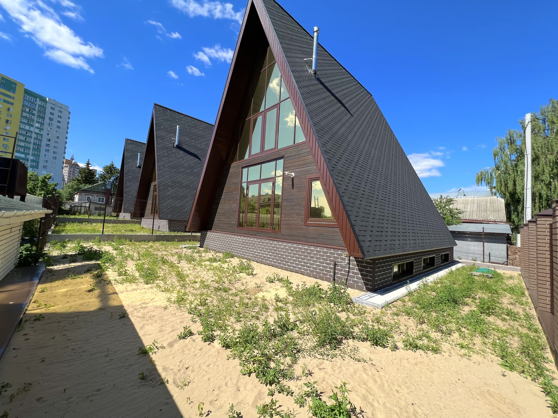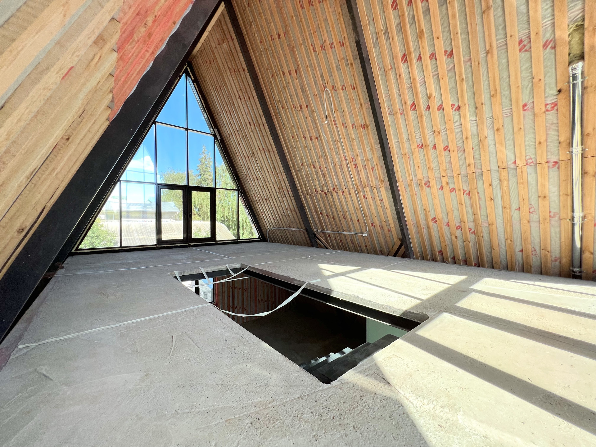 Дом без отделки, построен в современном, набирающем популярность в России стиле "A-frame House". Такие дома уже давно отлично зарекомендовали себя в Северной Америке и Канаде, в местах, со схожим с нашей полосой сложным климатом (снежные и холодные зимы, дождливые, ветреные осень и весна, аномально жаркие летние месяцы).