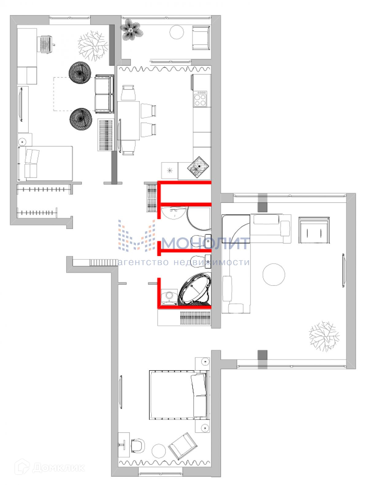 3к квартира 101 метр без отделки!