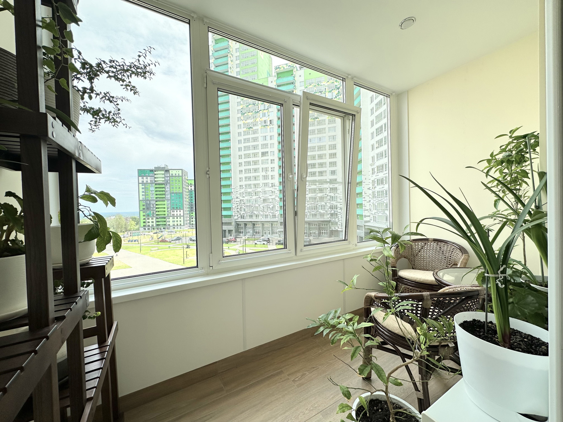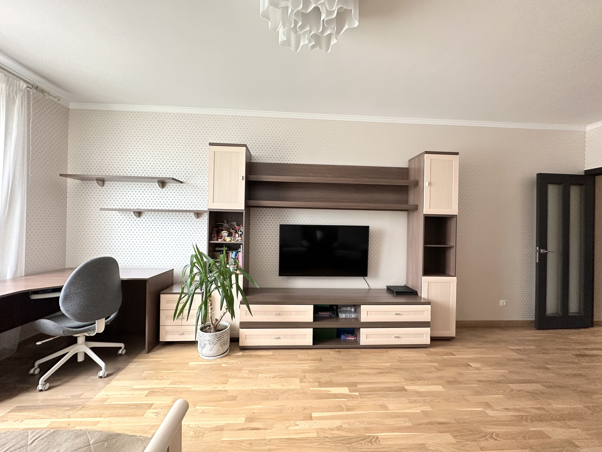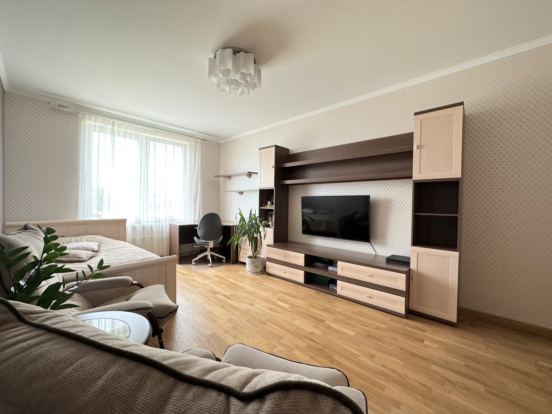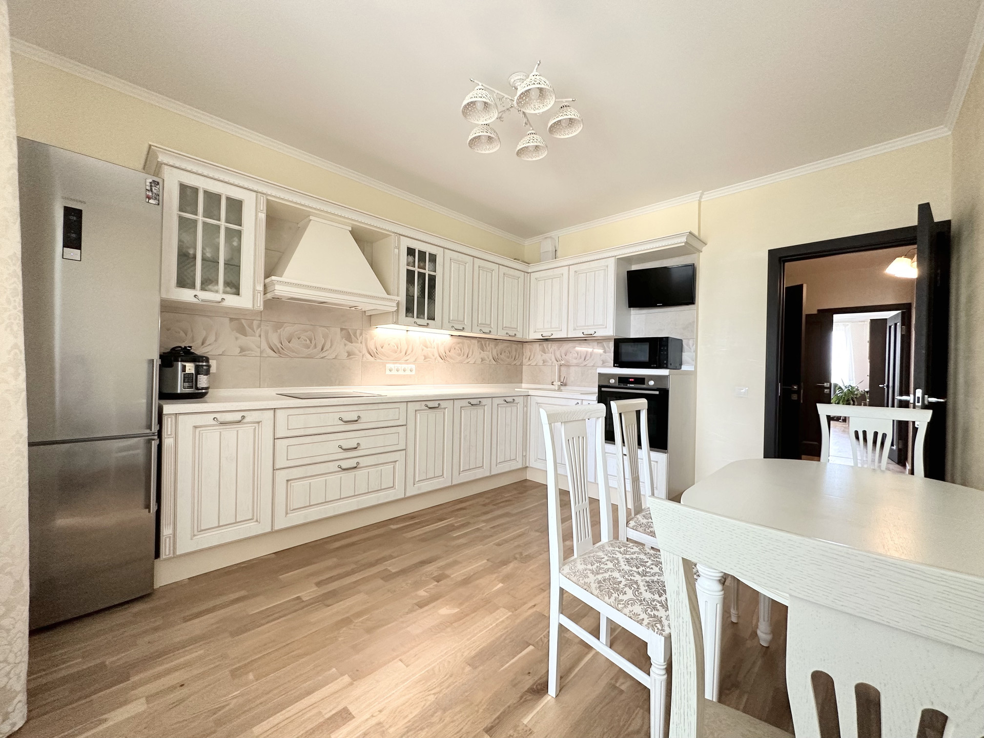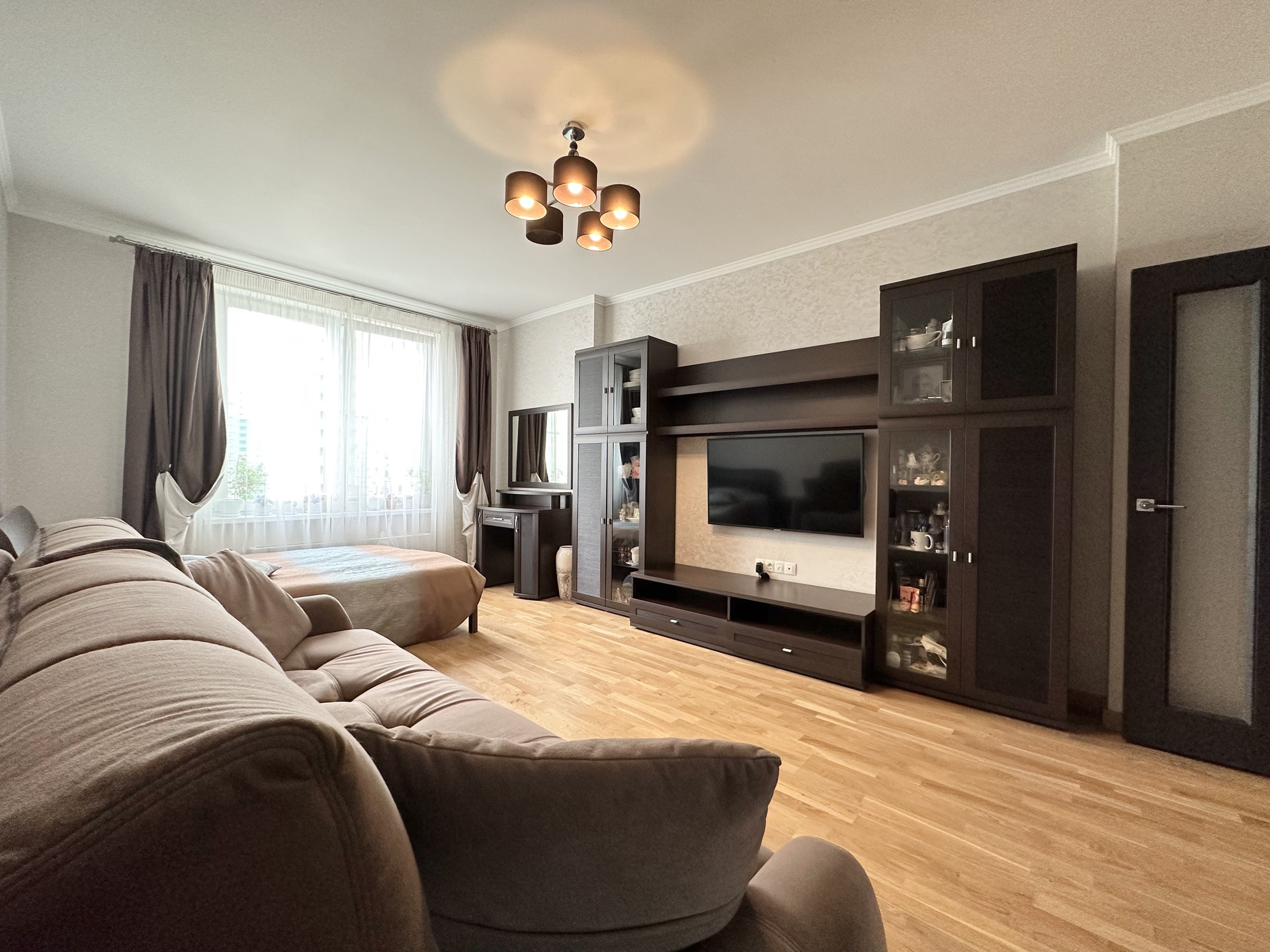 Квартира светлая и уютная, с функциональной современной планировкой: две удобные изолированные комнаты на разные стороны дома, большая кухня с выходом на обустроенную лоджию, просторный холл, санузел раздельный, практичная гардеробная с наполнением, высокие потолки.