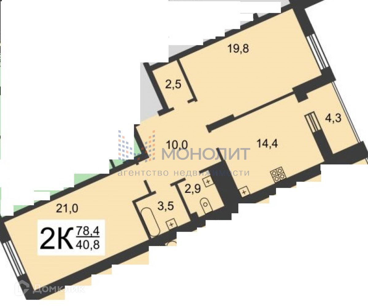 Общая площадь 74 м2