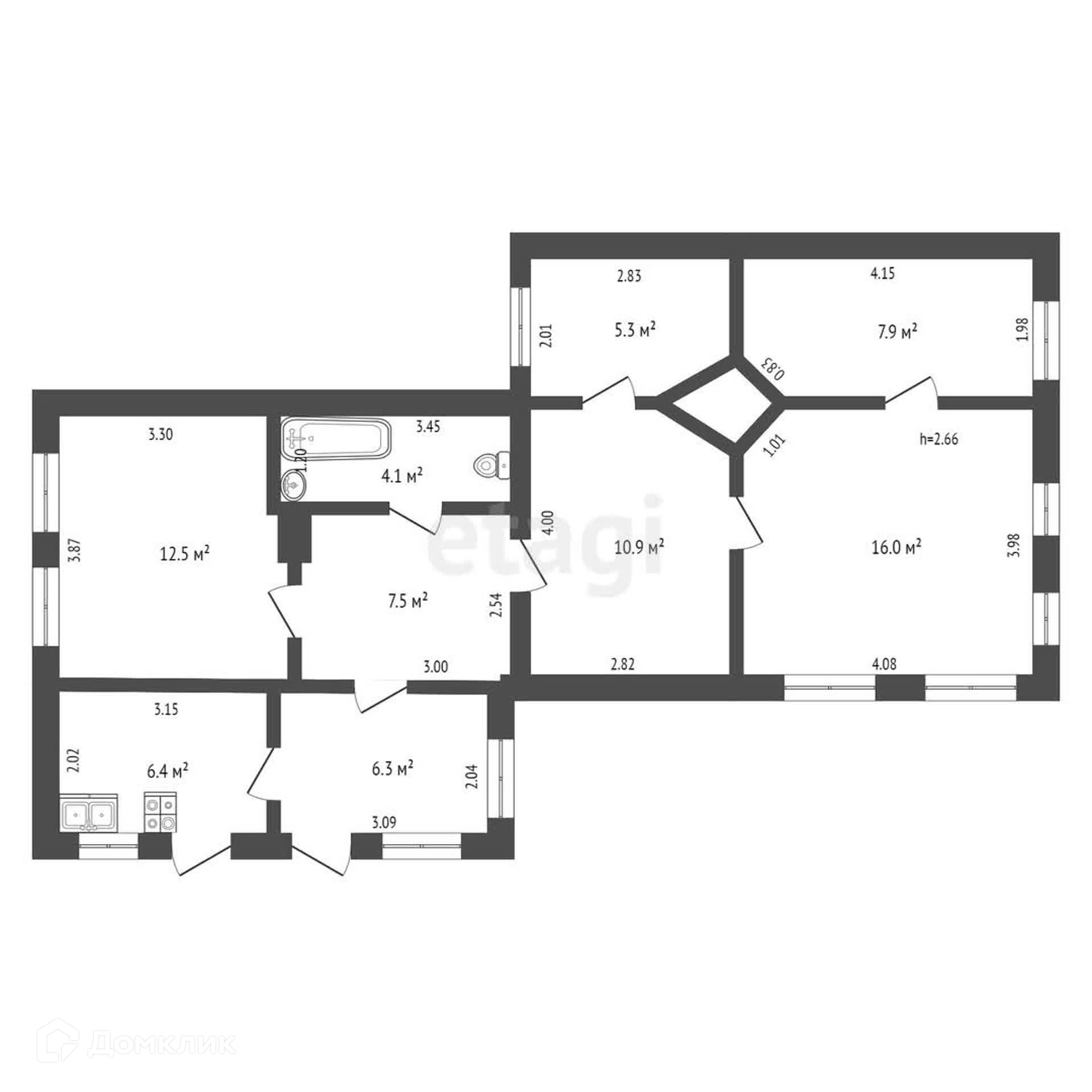 Общая площадь 76.9 м2