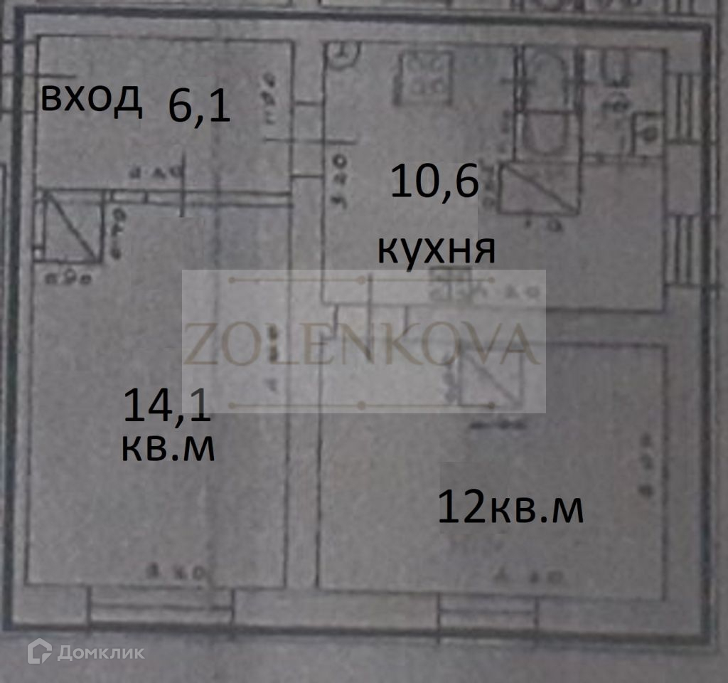 Жилая площадь 26.1 м2