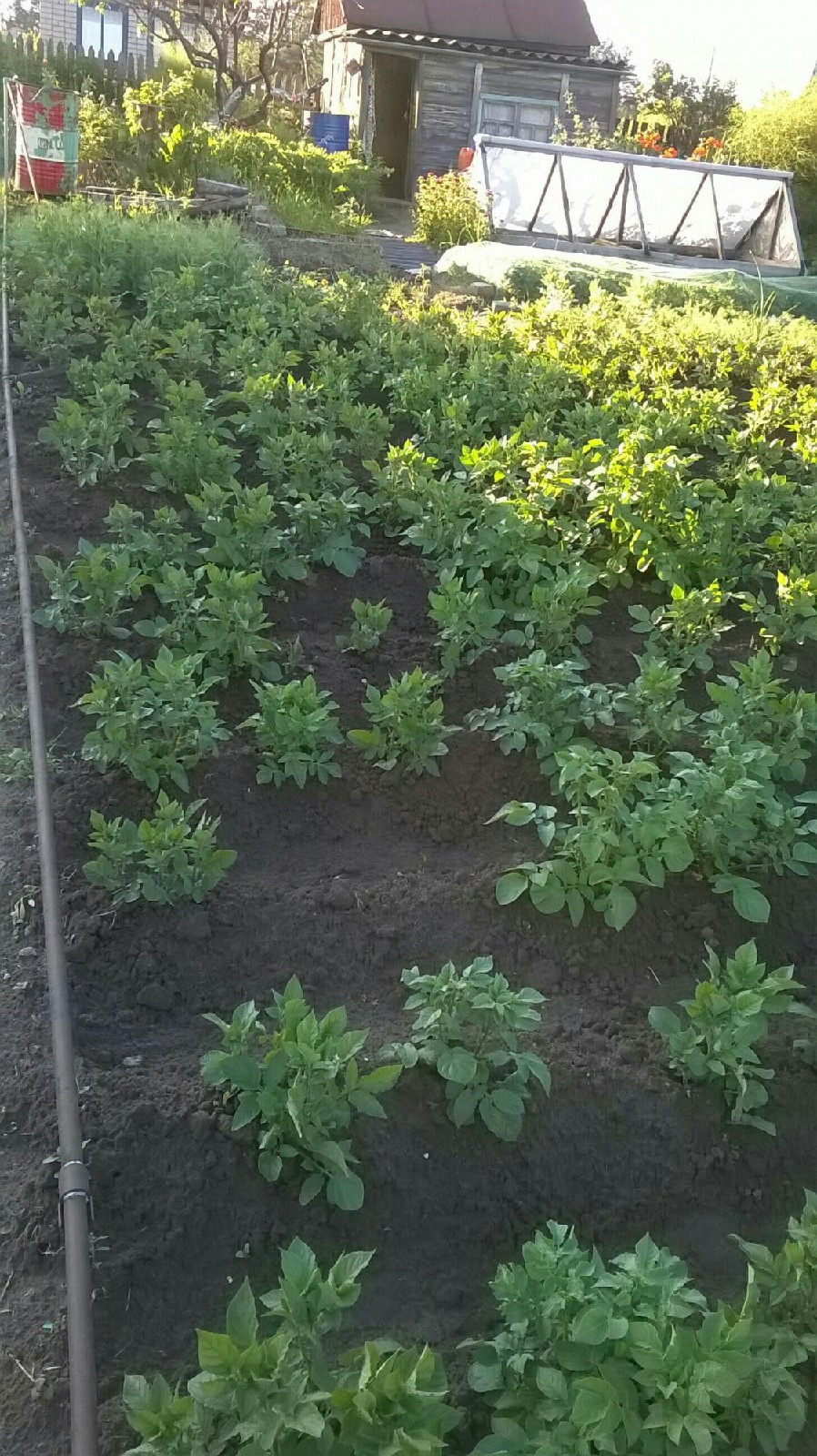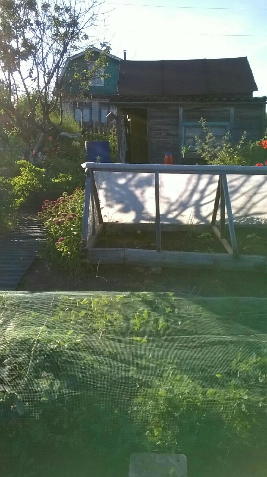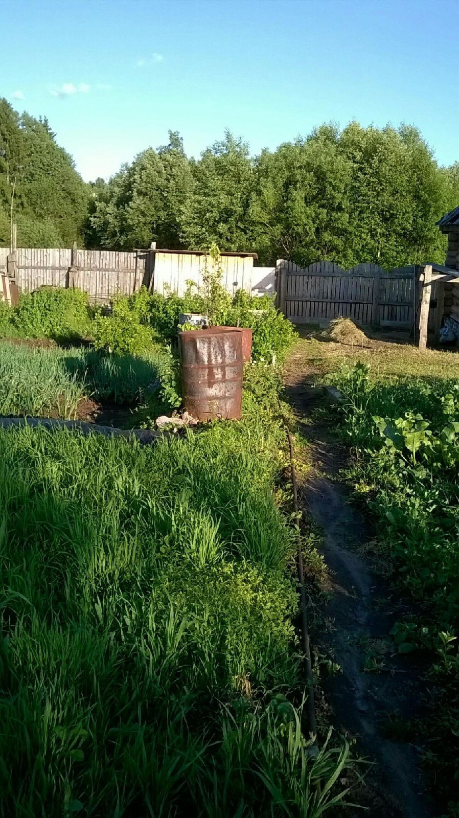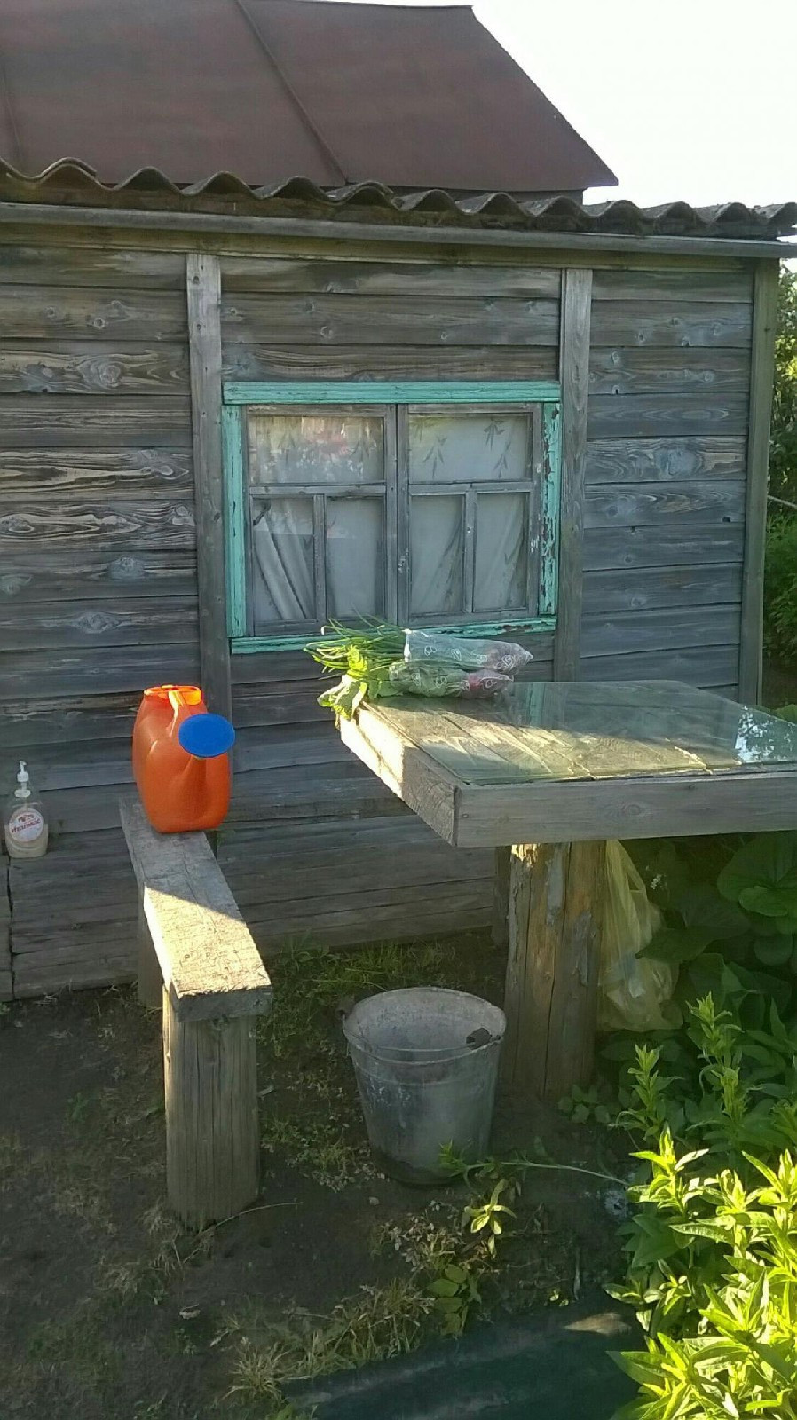 Есть хозпостройка с туалетом и домик с мебелью.Парник,колодец,бочка с водой,контейнер под навоз или  перегной.Парковачные места,остановка в двух шагах городской транспорт,магазин рядом.От Слободского(10 мин на машине).