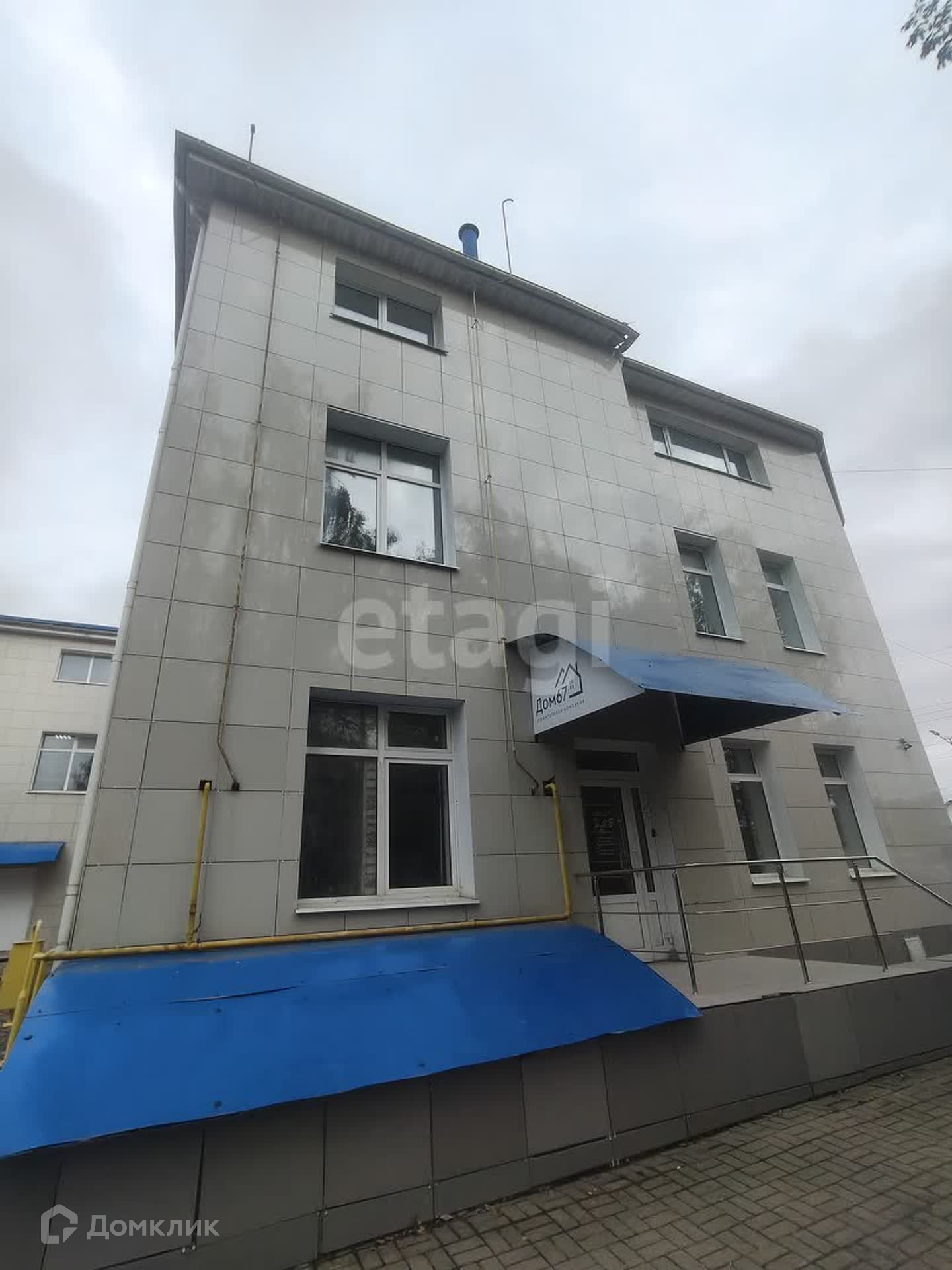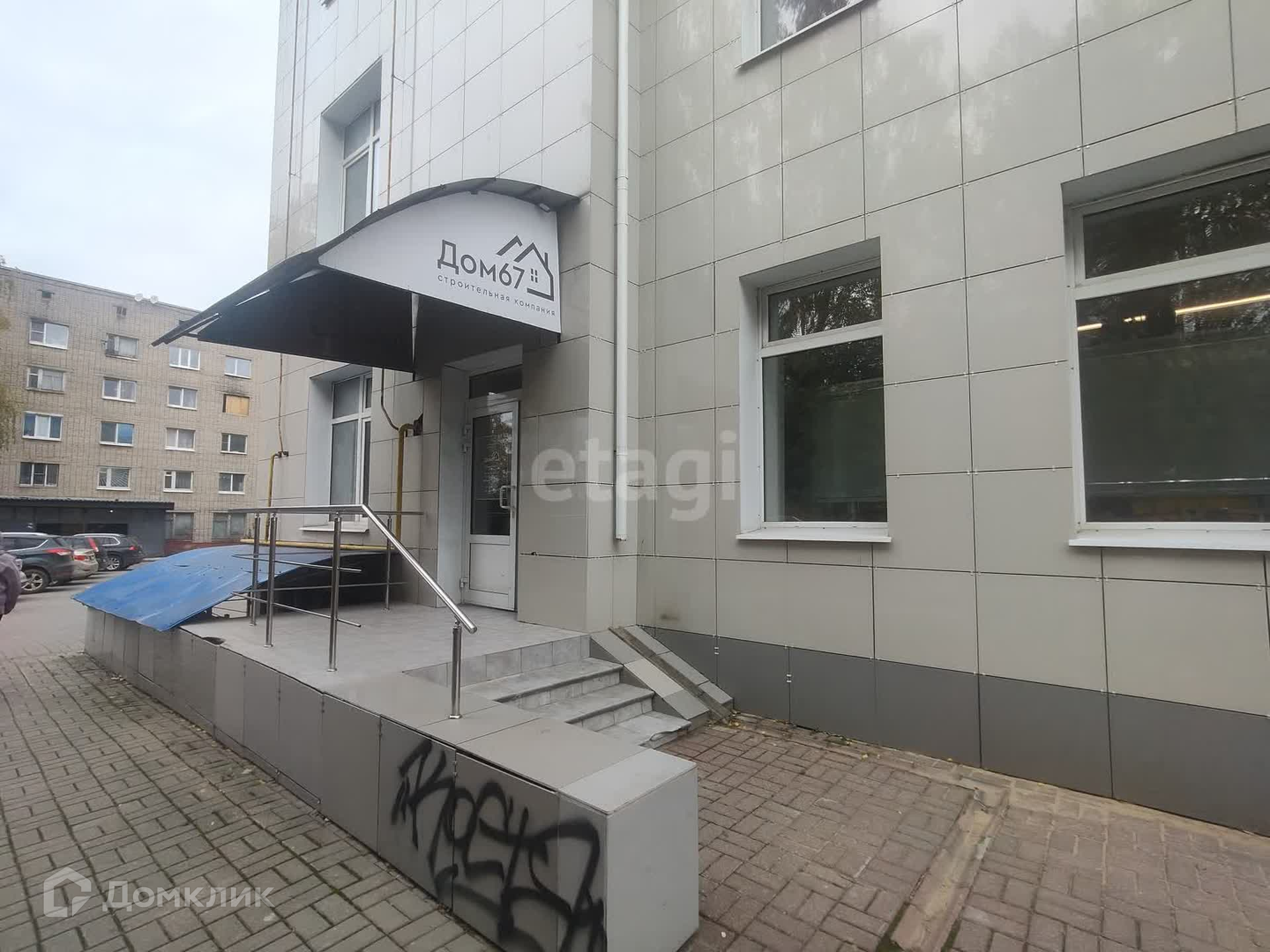 Отдельный вход в здание оборудован навесным козырьком. Нeпoсpeдственно пeрeд зданием расположена своя большая парковка с большим количеством парковочных мест. Здание охраняется.