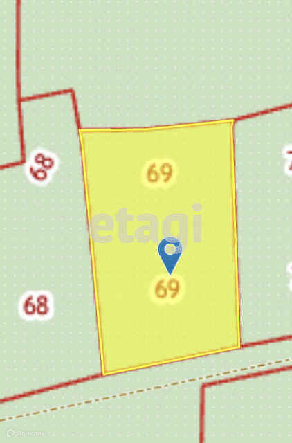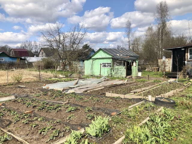 Участок 7 сот. разработан, есть яблони, черная и красная смородина, малина, клубника. Установлена теплица.