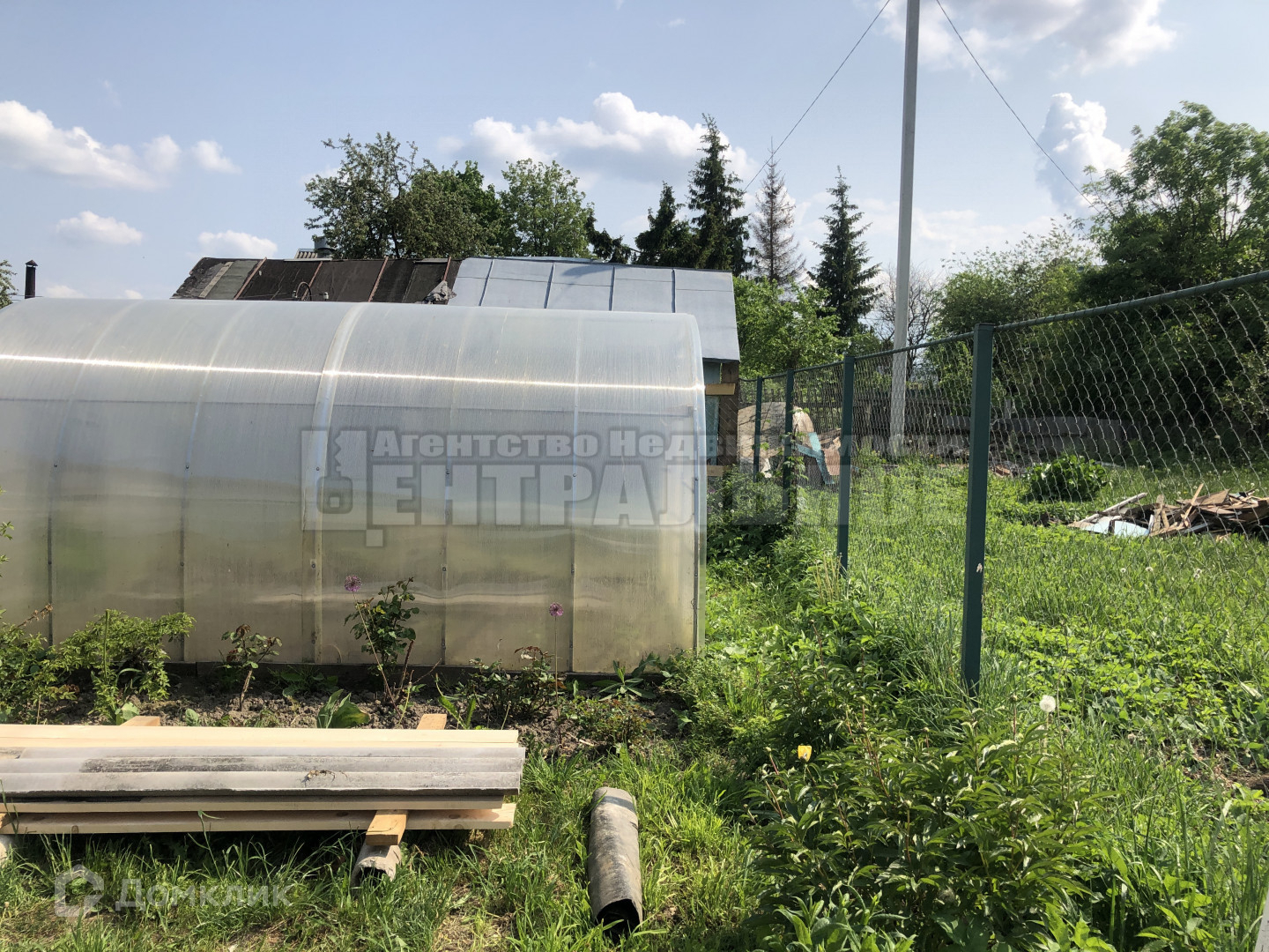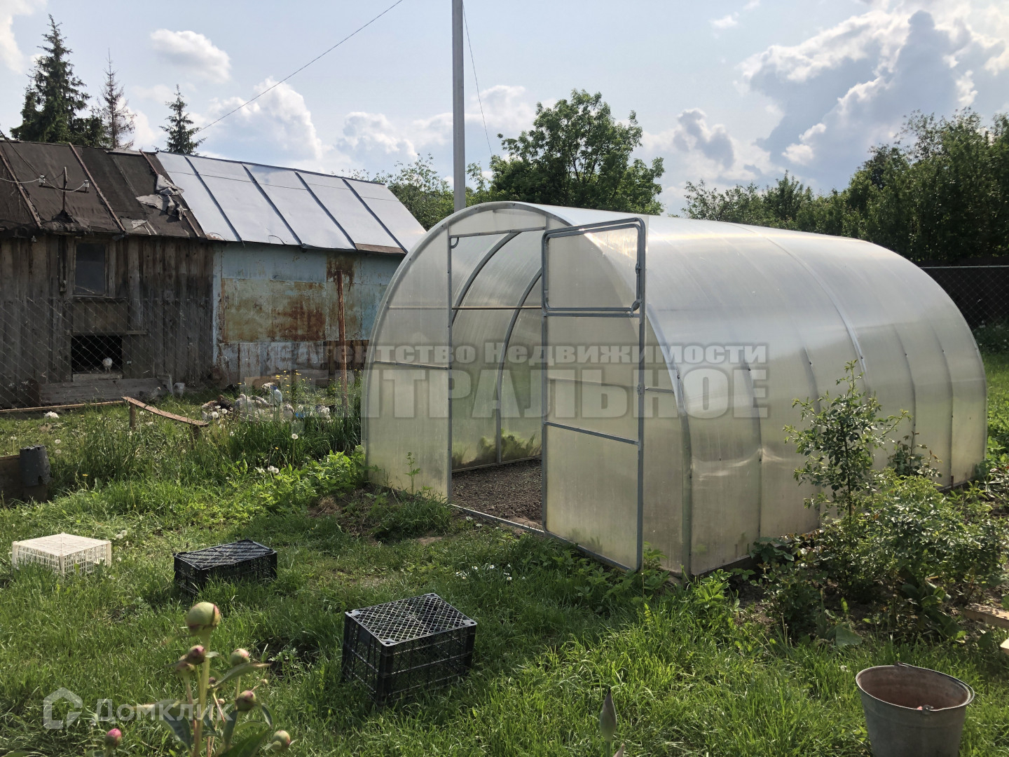 Земли 5.94 соток. Участок разработан, есть теплица, гараж, сарай ( где находятся куры).