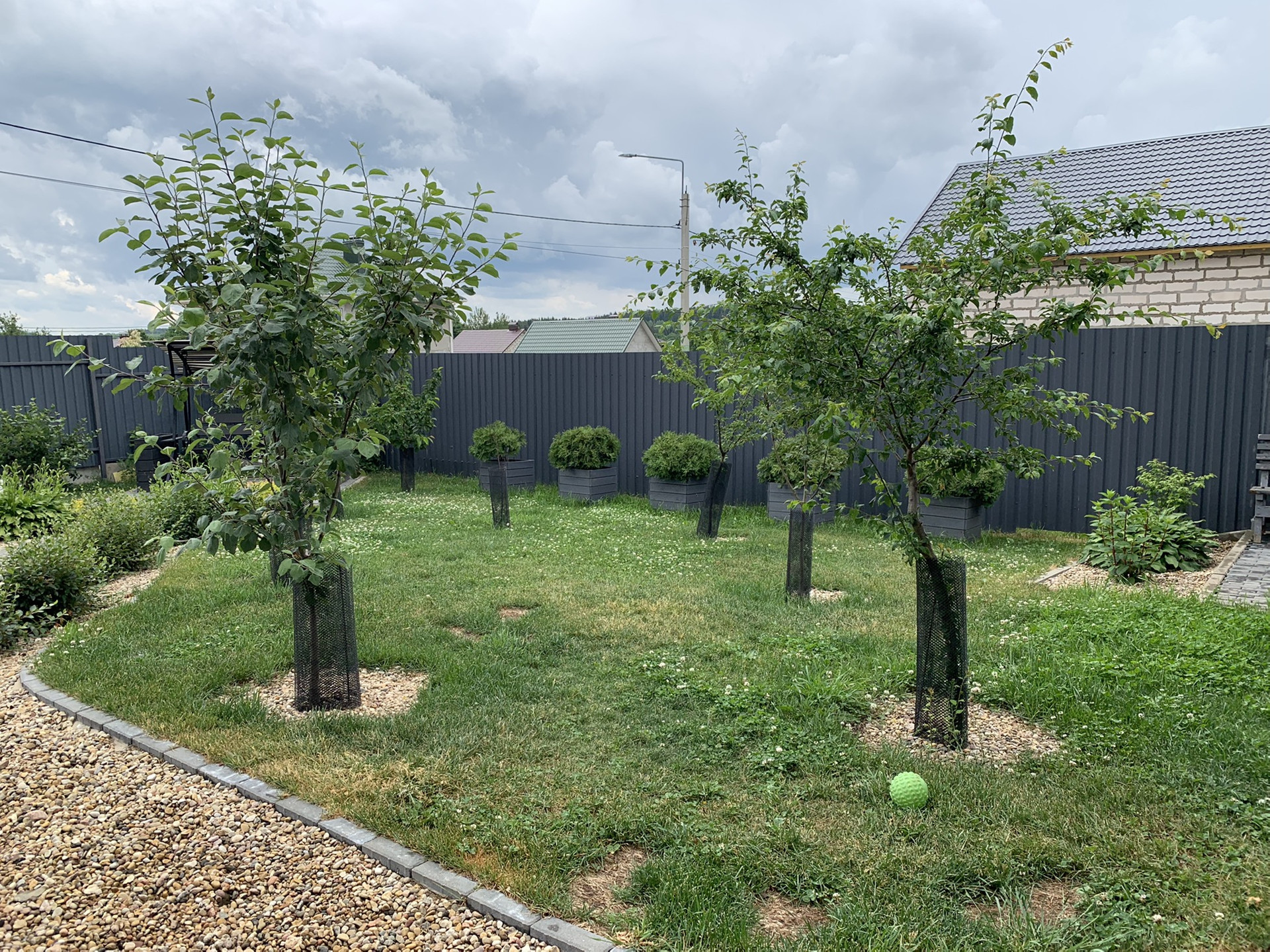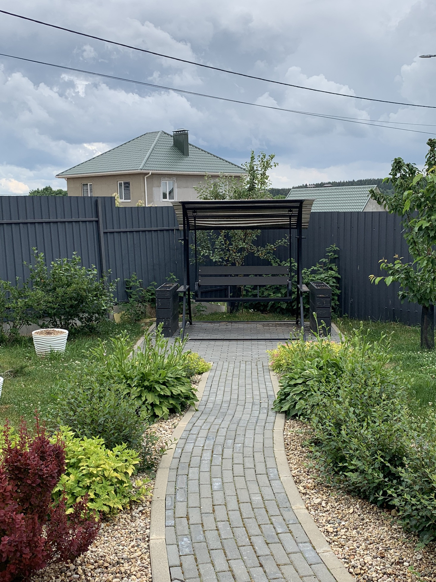 - Дорожки выложены брусчаткой. По всему участку сделана дренажная система.