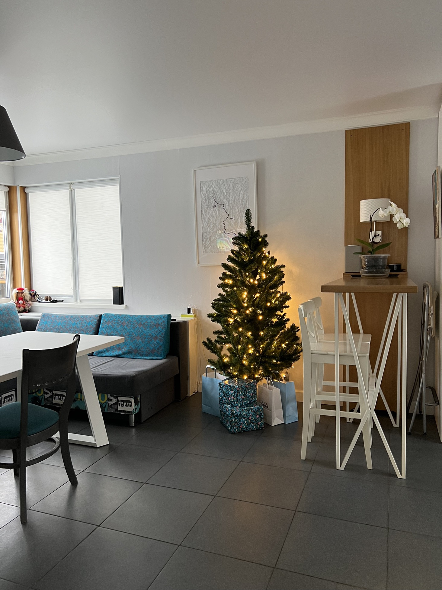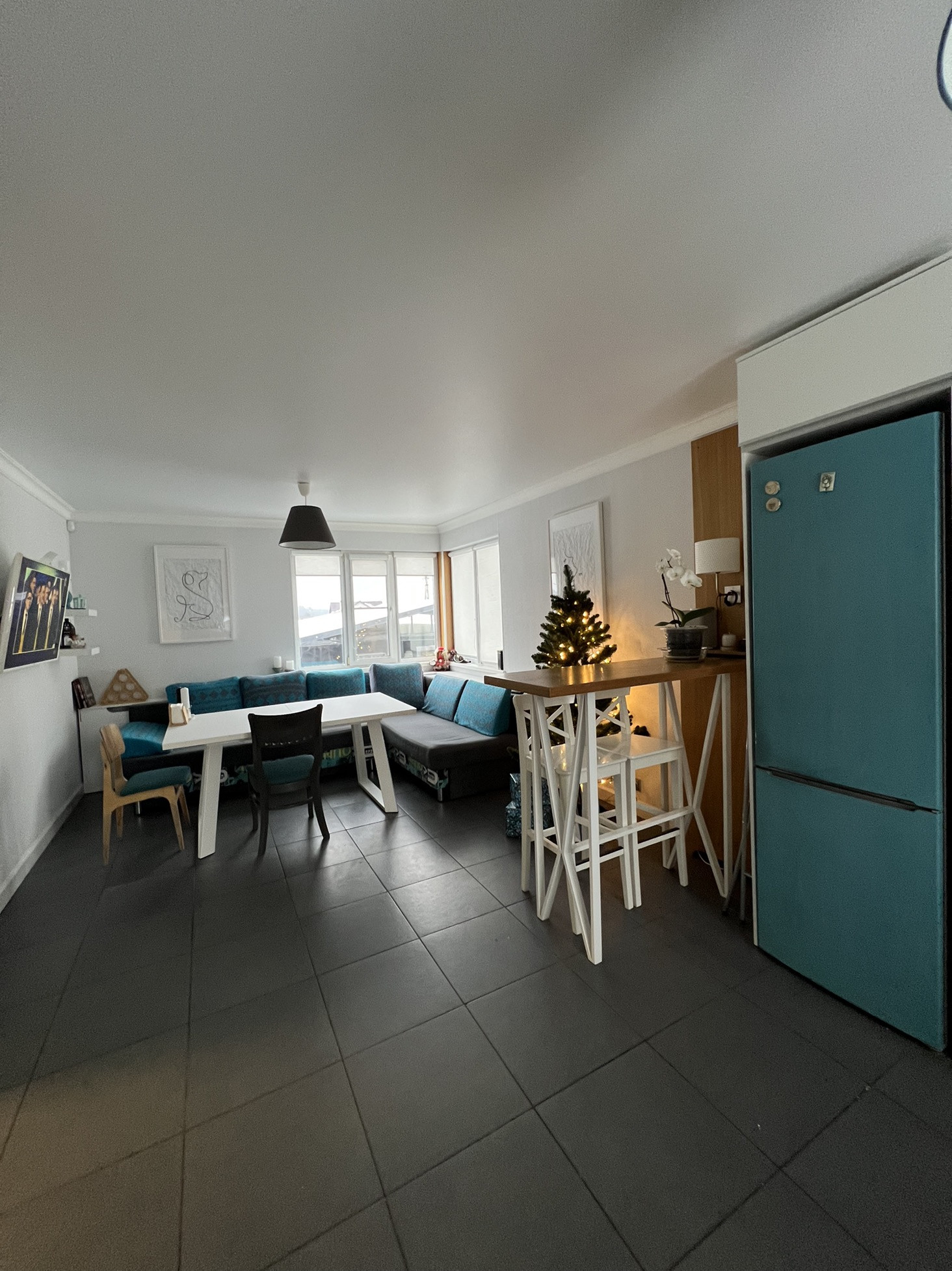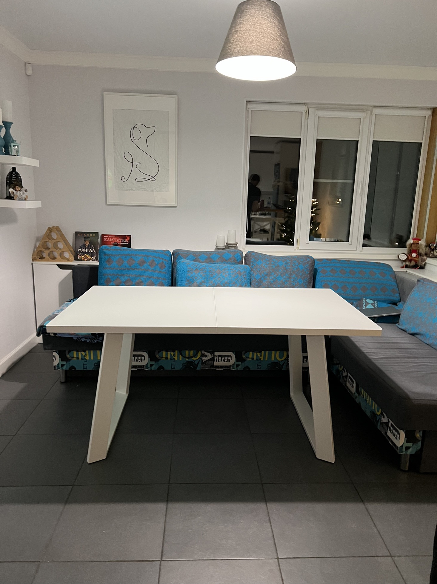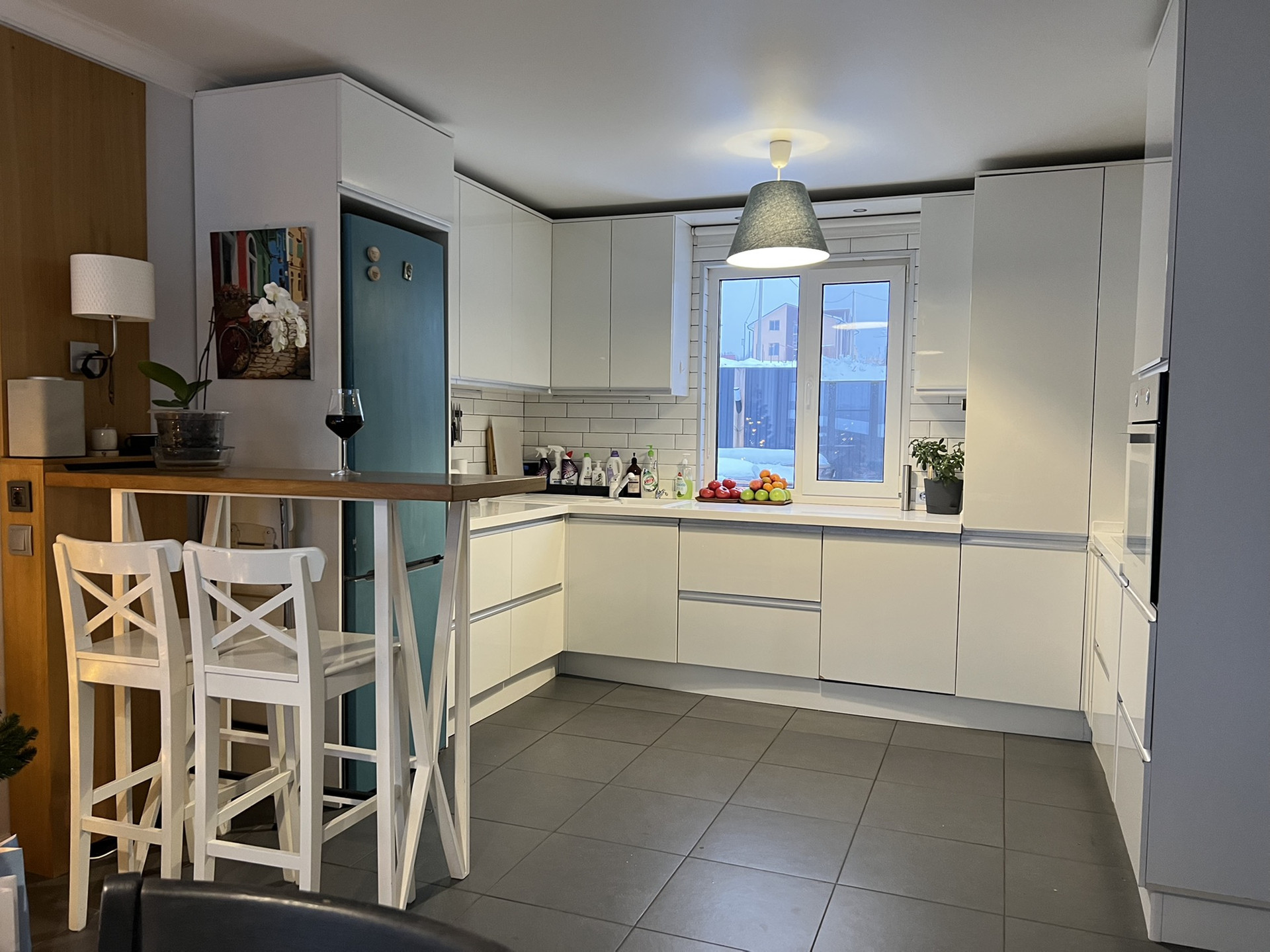 - Гостиная (25 м2), с большими окнами, двумя комфортными диванами и белой кухней под потолок создают уютное пространство для отдыха. Небольшая барная зона позволит в тишине выпить чашечку кофе или устроить шумную вечеринку;