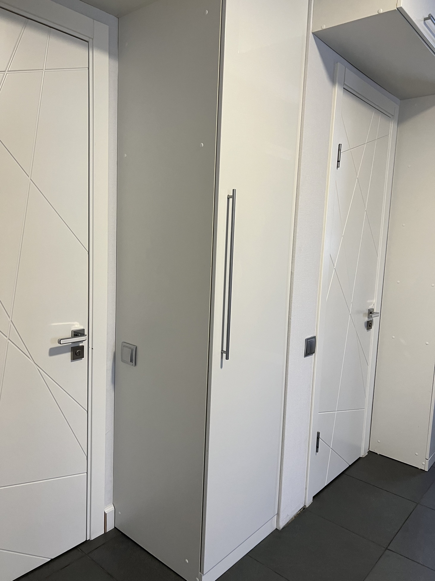 - Холл-коридор (14,3 м2) с встроенными шкафами под потолок;