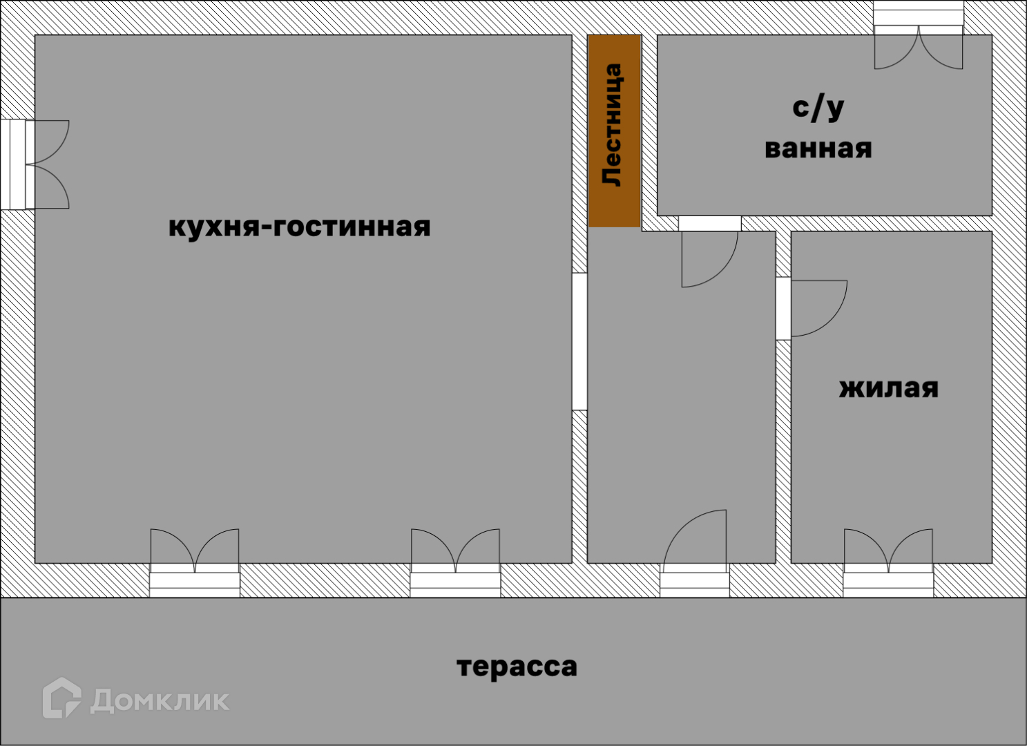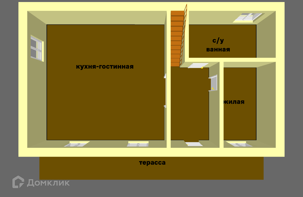 На 1-ом этаже – прихожая, ванная и санузел, жилая комната, просторная кухня-гостиная.