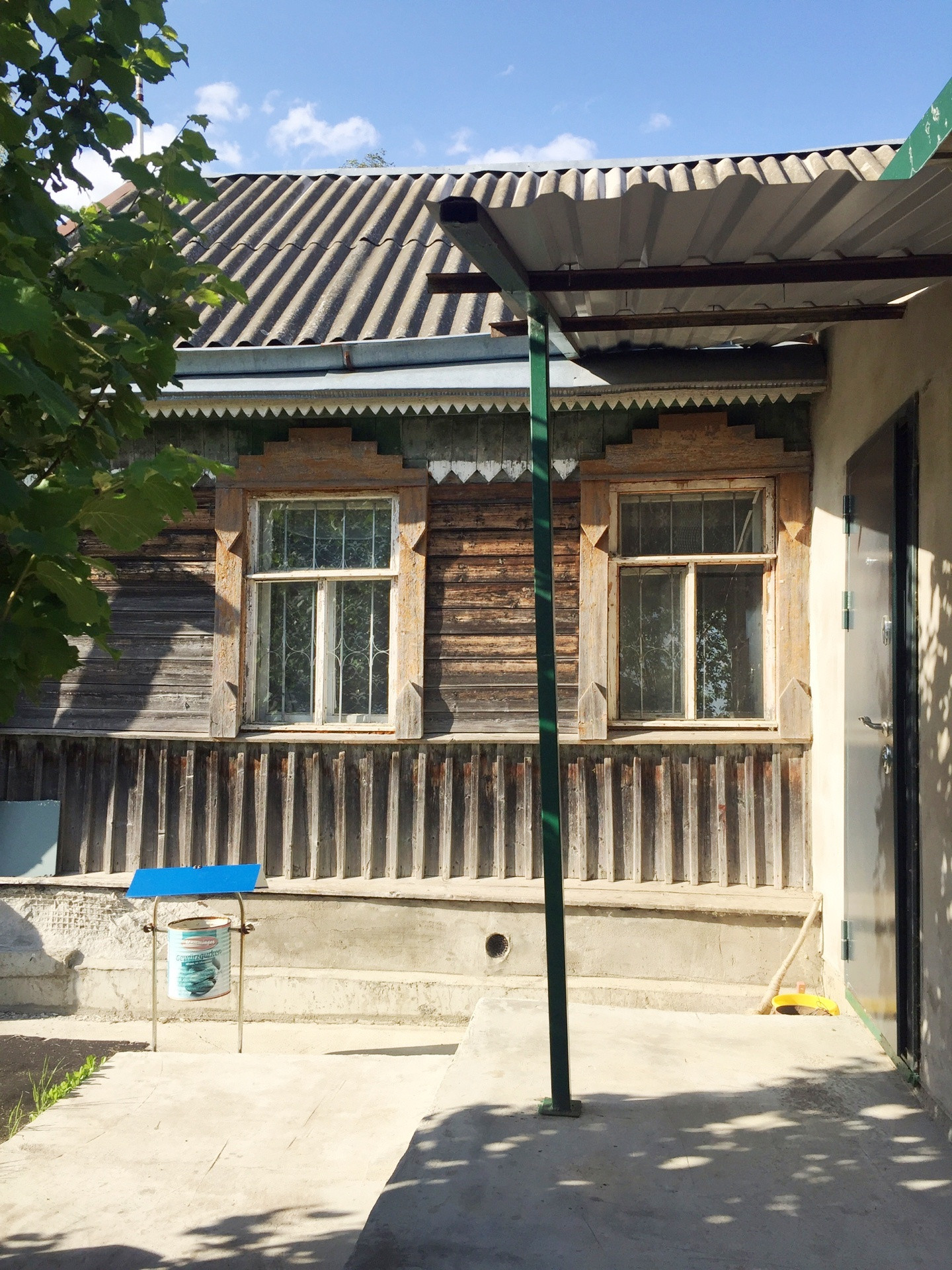 К дому пристроена веранда из блоков.