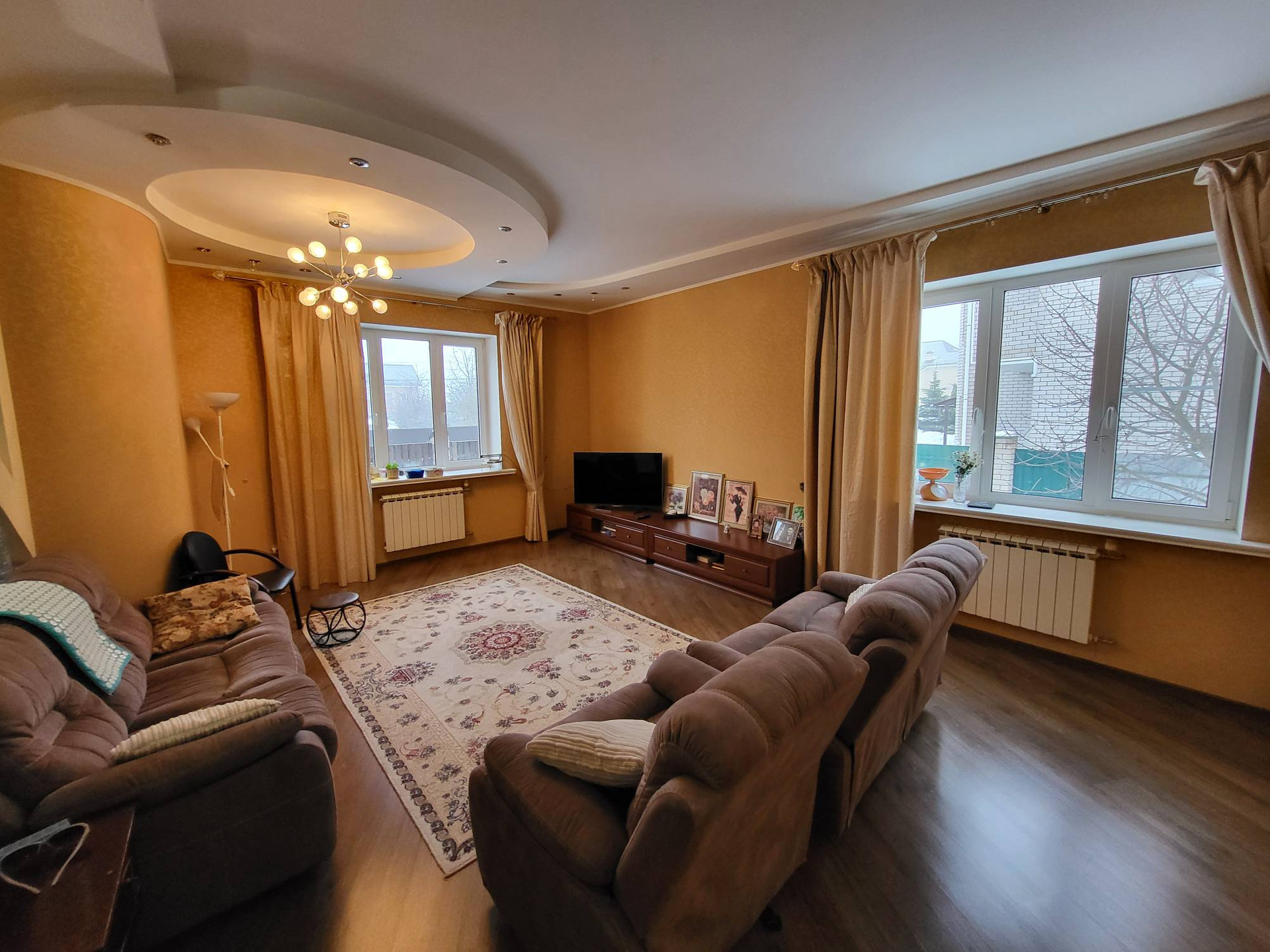 Дом кирпичный, два этажа, перекрытия-бетонные плиты, фундамент- ленточный, подвал под всем домом. Крыша-металочерепица. Отопление-газовое, вода-центральная, центральная канализация, электричество-380 вт, отпико-волоконный интернет.