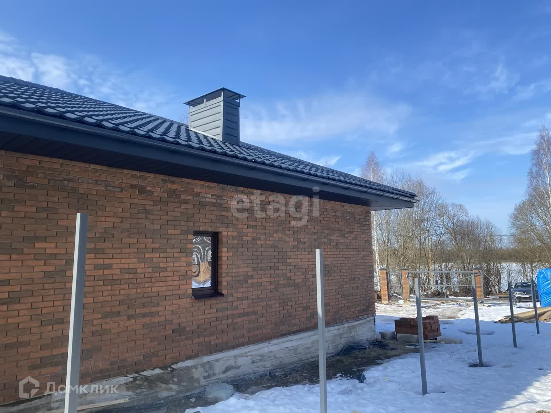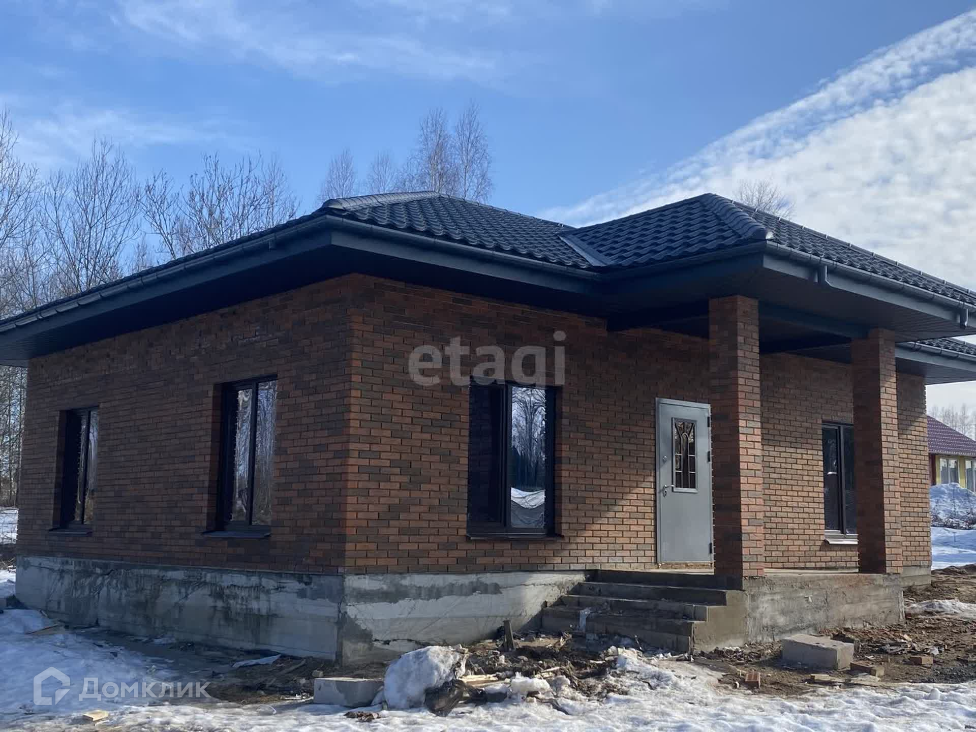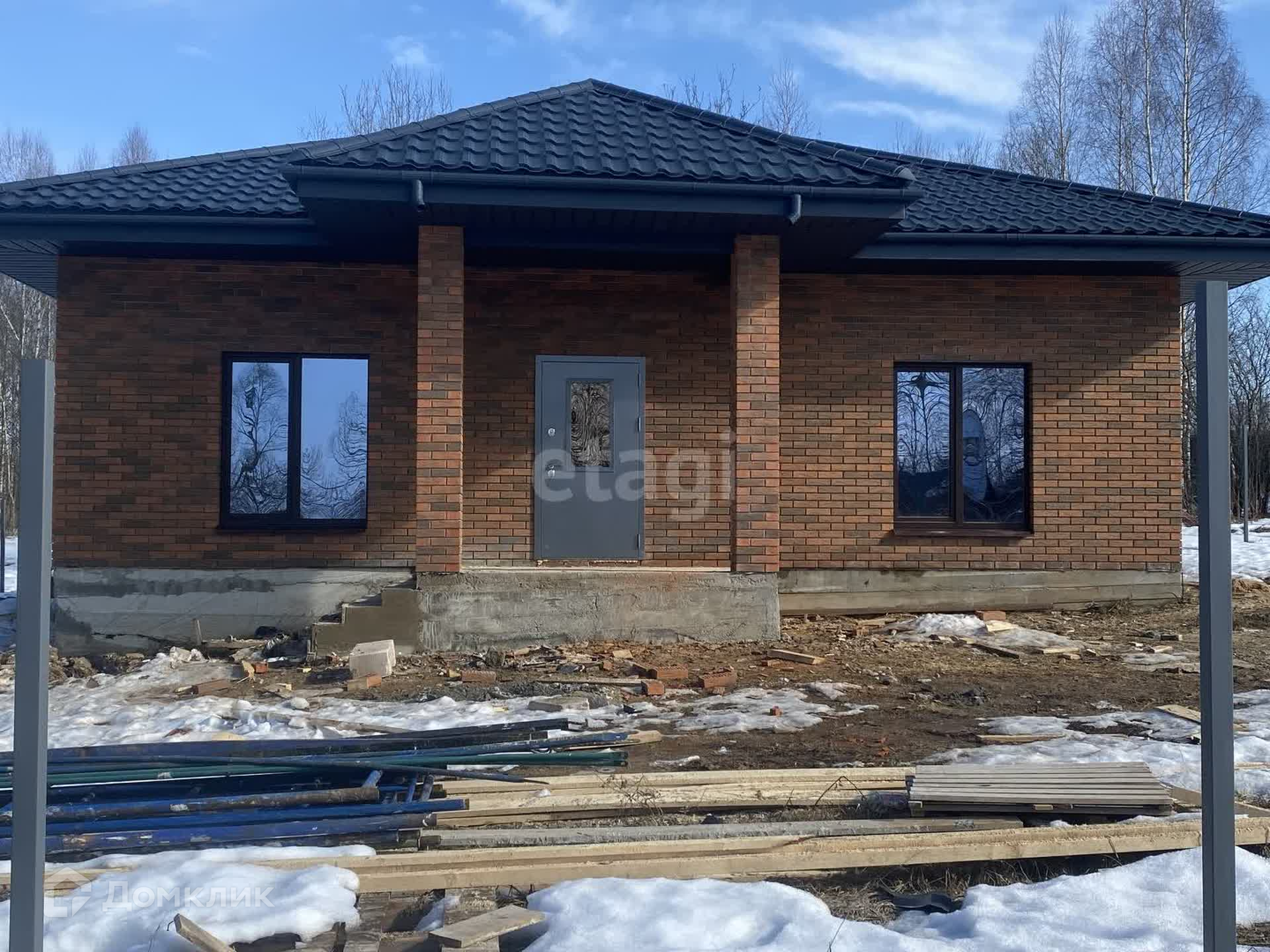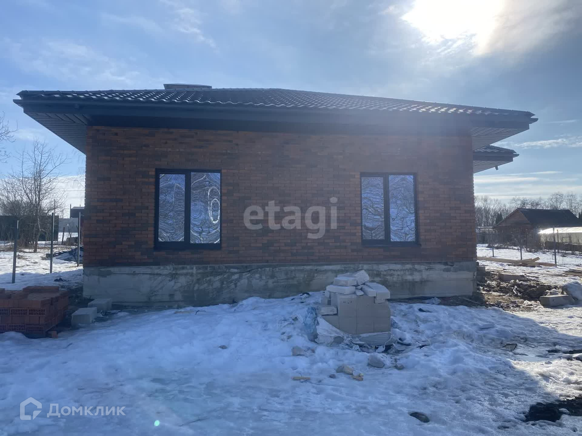 Фундамент ленточный,пол-залита плита. Стены-газоблок,облицовка-кирпич,окна-70 профиль кбе,крыша-металлочерепица Гарда.
