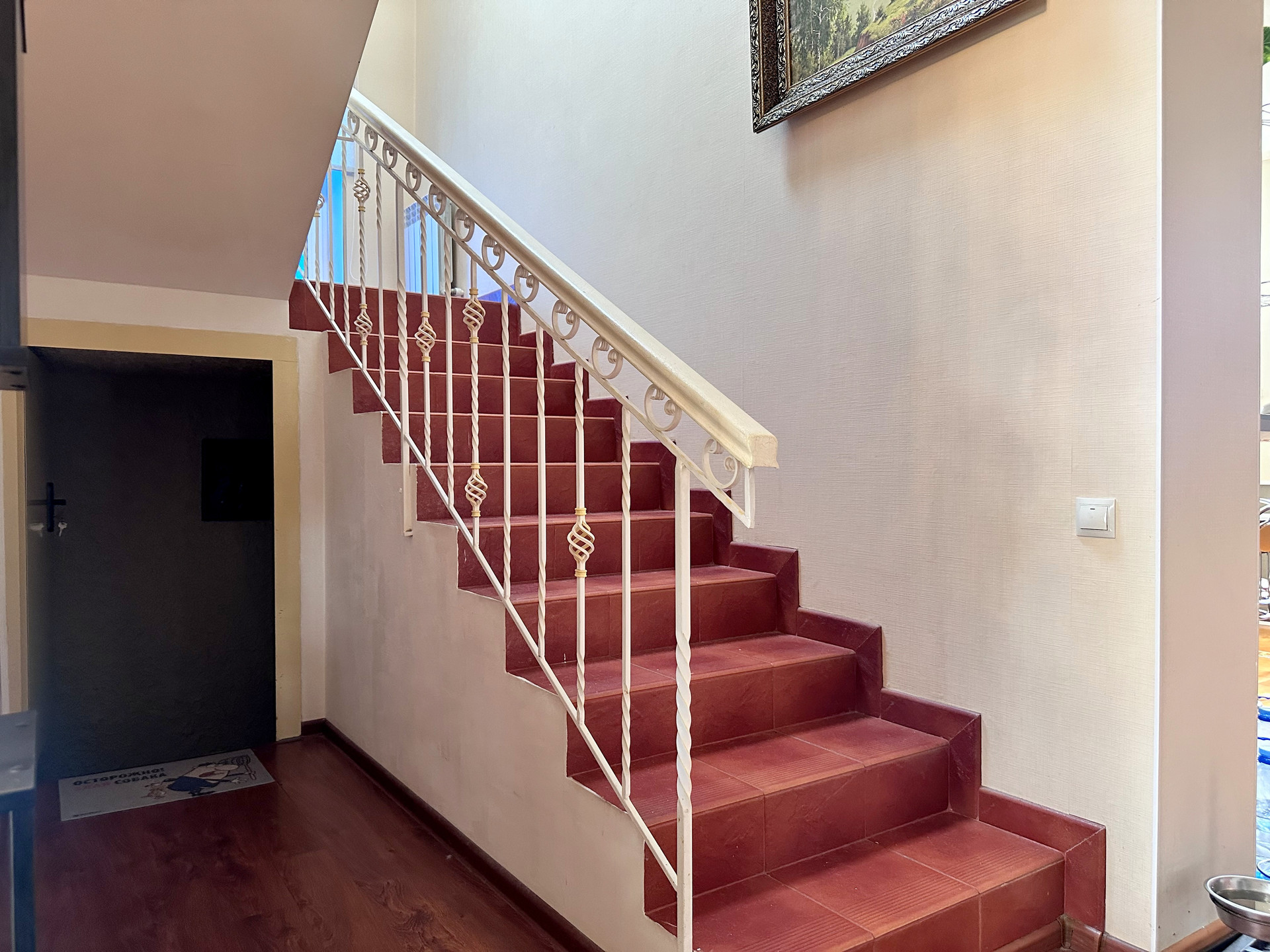 - Лестница бетонная, выложена плиткой, перила кованные.