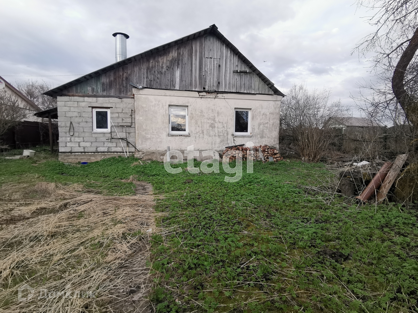 Дом построен из шлакоблока, новая пристройка - из пеноблока, установлены пластиковые окна по всему дому, натяжные потолки. В дом заведены все коммуникации – электричество, газ (отопление индивидуальное), вода (центральное водоснабжение), канализация местная.