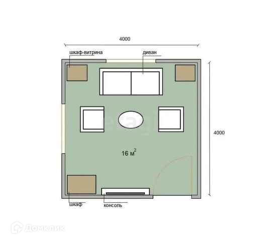 Общая площадь 15.7 м2