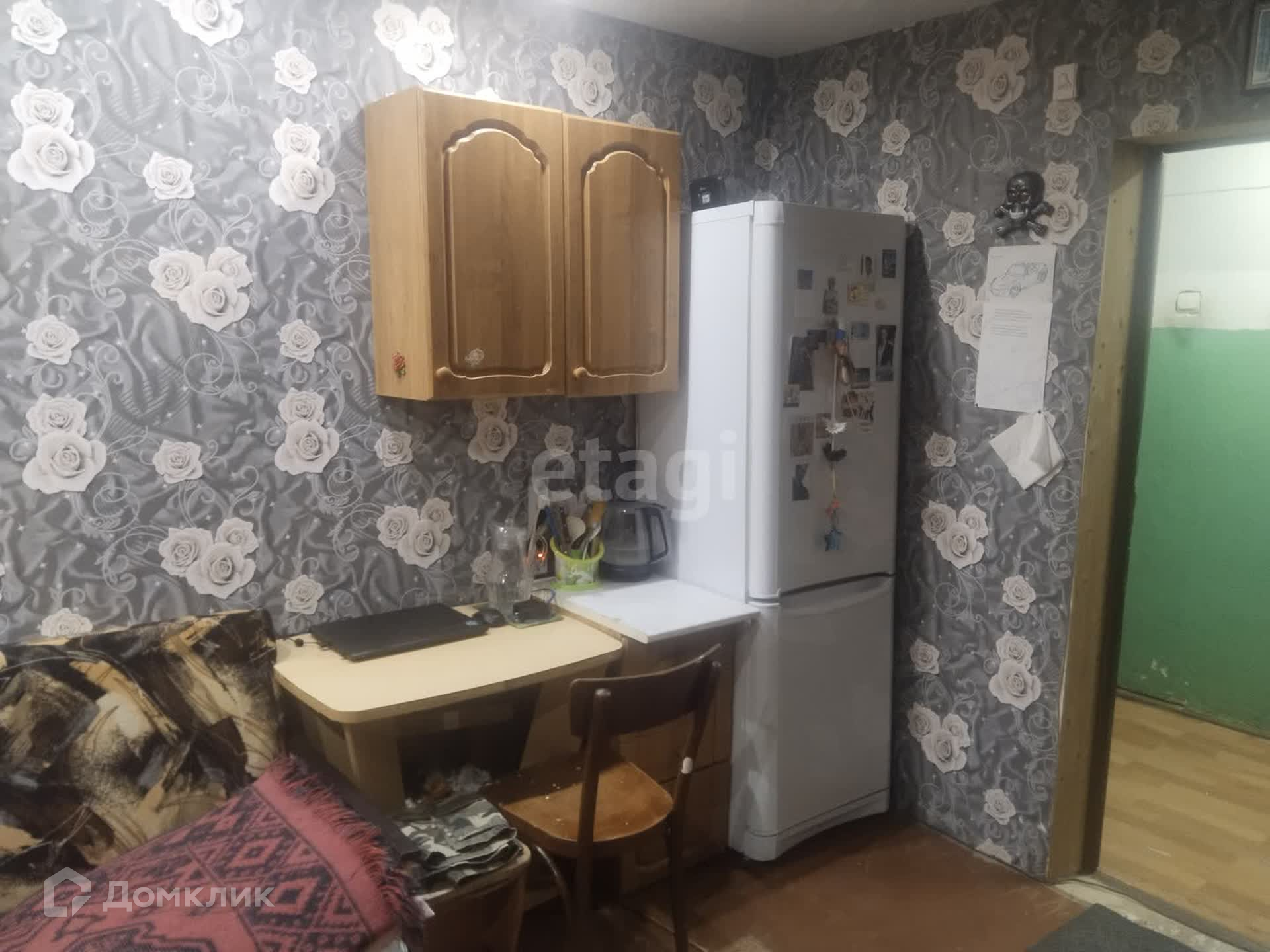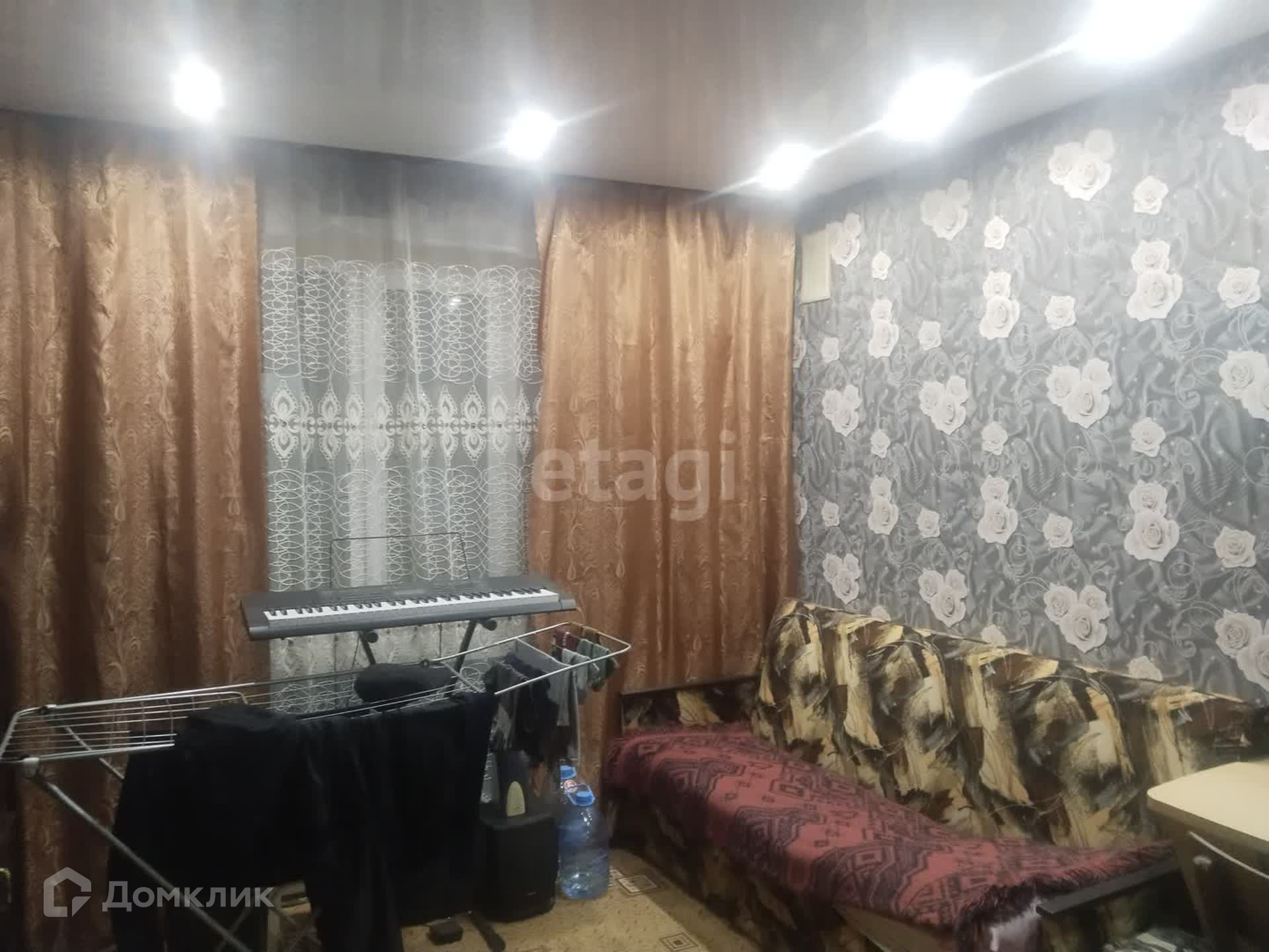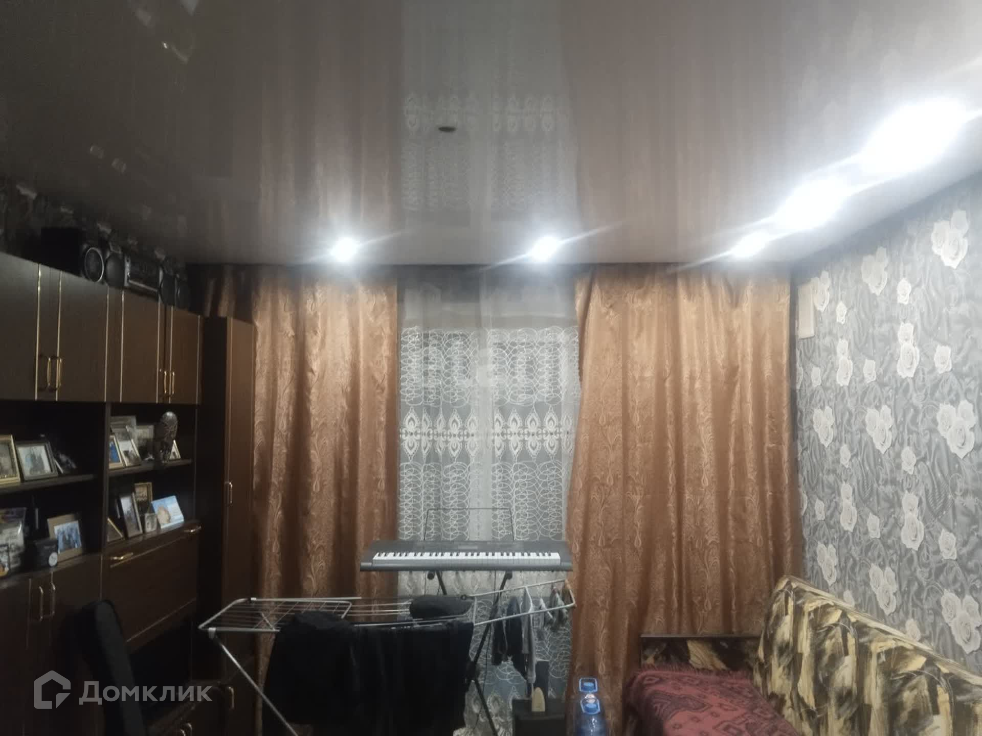 Чистая, не угловая, выполнен косметический ремонт, натяжные потолки. В комнате остается вся мебель, кроме холодильника (собственник оставляет за доп. плату).