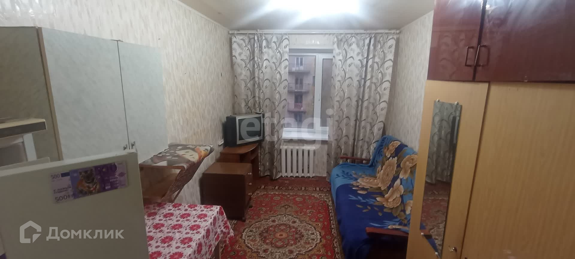 В комнате выполнен косметический ремонт ,установлено пластиковое окно, остается вся мебель: шкаф, диван, стол, стул, подвесной шкаф, тумбочки, телевизор и холодильник!! Есть место для подключения стиральной машины!