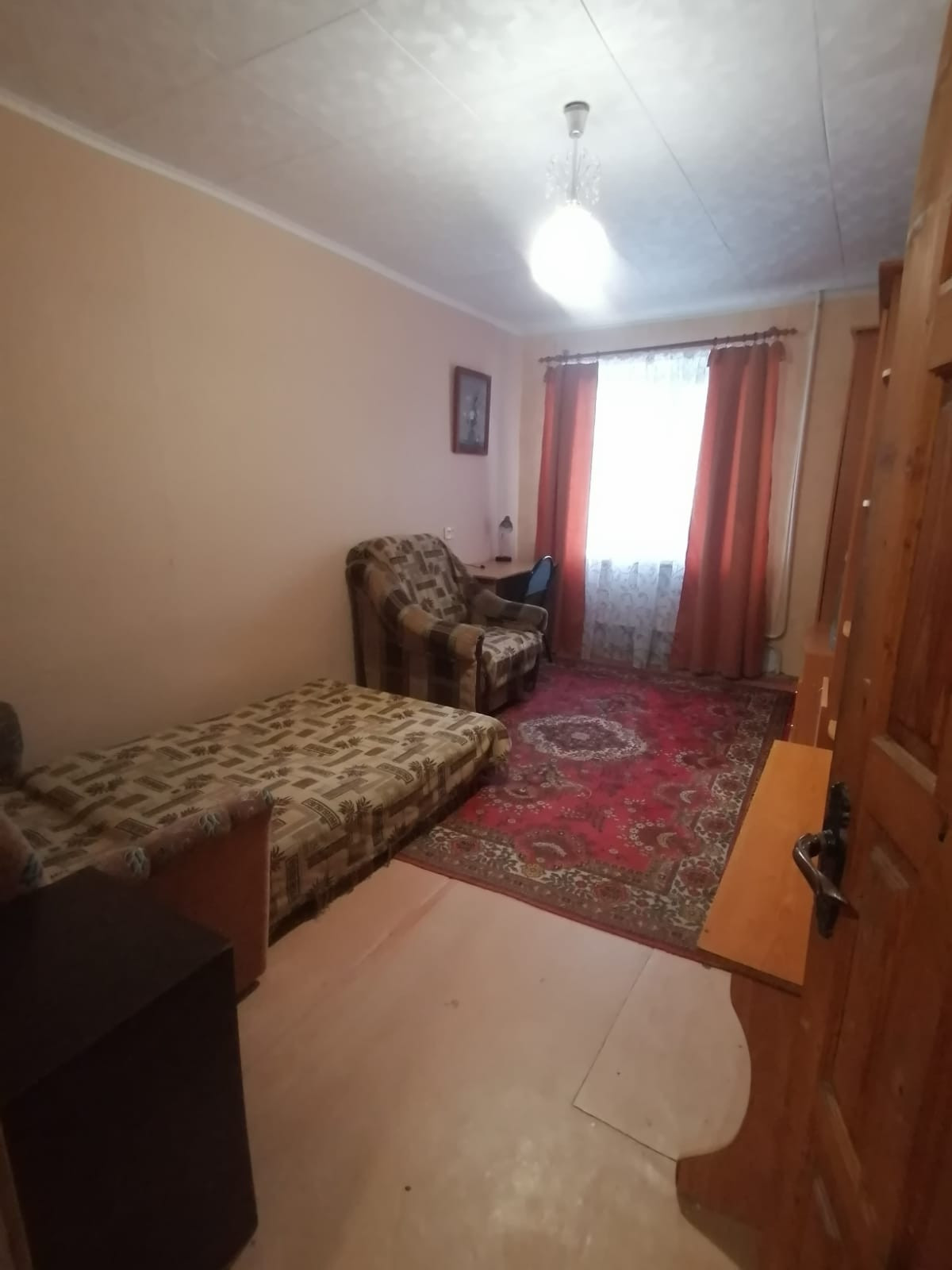 комната в двухкомнатном блоке,на подселении 1 чел(работает не в Смоленске,бывает редко),кухня общая,в данное время комната сдается ,можно квартирантку оставить.Хорошая транспортная развязка,все в шаговой доступности(школа,