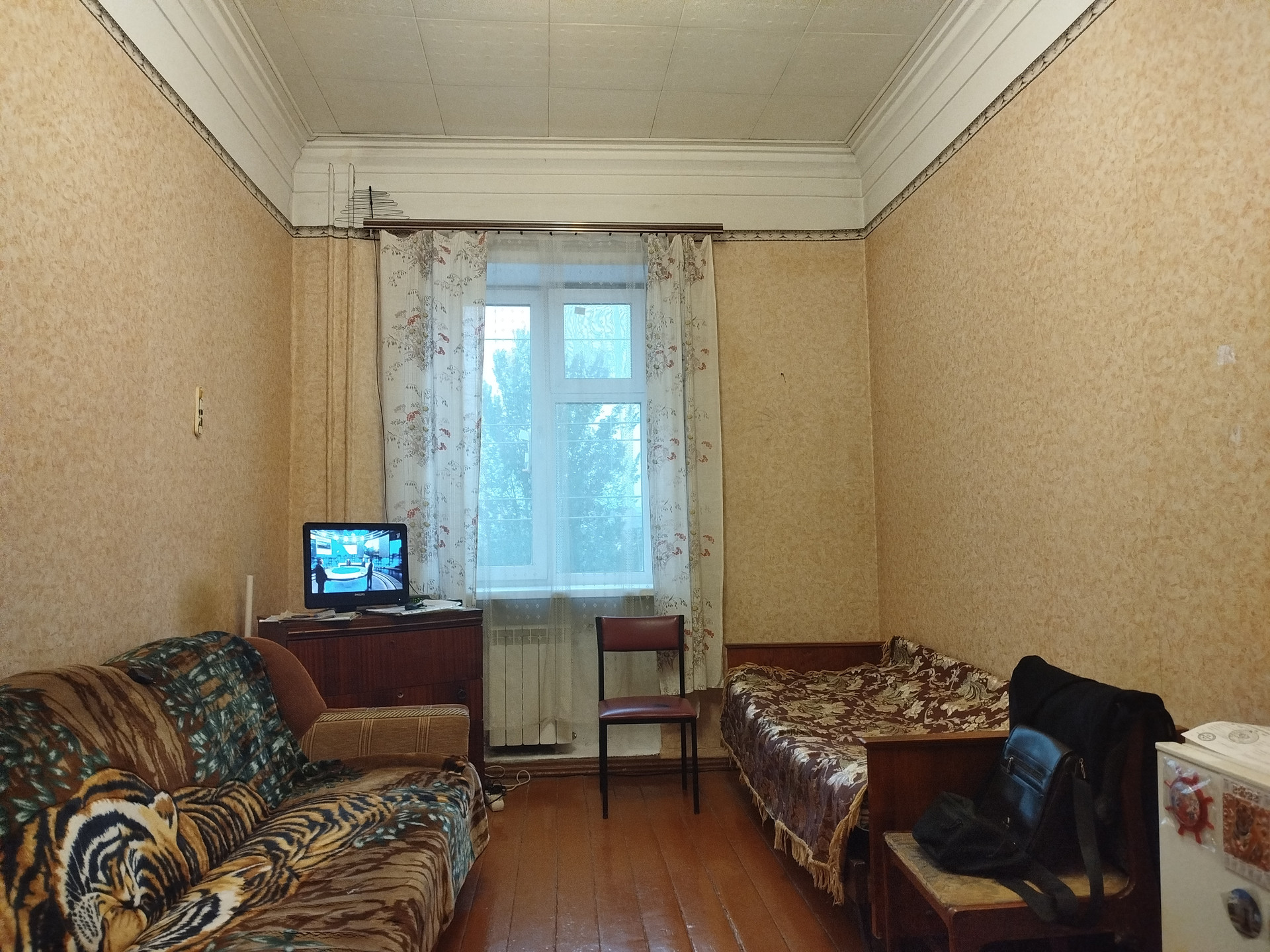 Продам комнату в 4-х комнатной коммунальной квартире. Три комнаты принадлежат семье, мне одна комната 15 кв.м. Вид на набережную Днепра.