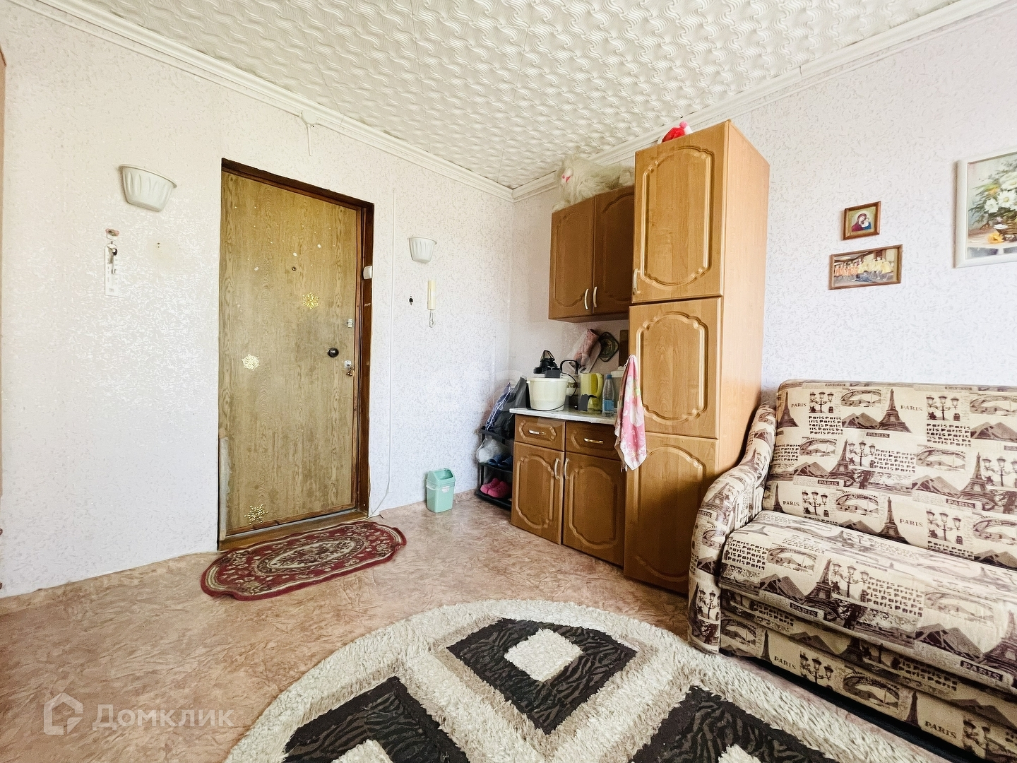 В комнате выделена кухонная зона, зона под прихожую и спальная. Душ и кухня на блок. Остается вся мебель.