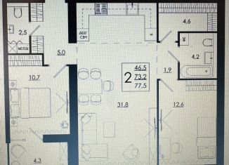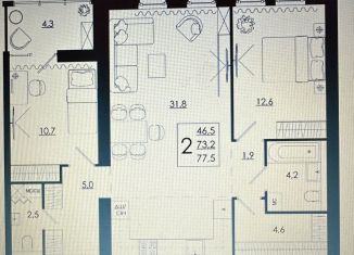 Продажа 2-ком. квартиры, 77.5 м2