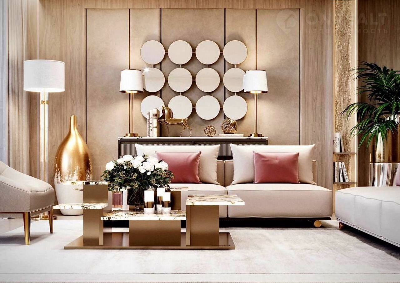 В каруселе фото представлен возможный ремонт вашей супер квартиры, которая будет расположена во 2-м доме, на 16-м этаже. Общей площадью 206 кв.м. Фото планировки в каруселе.