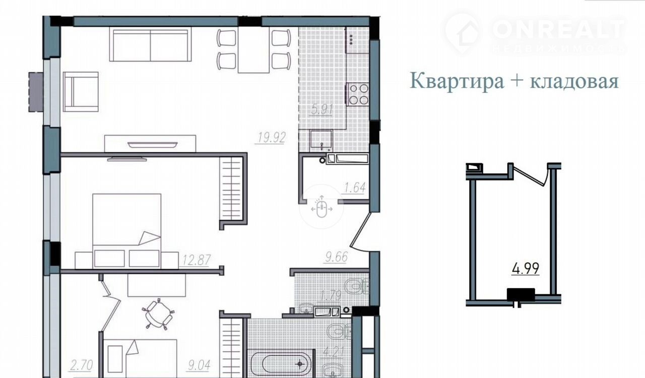 Пpодажa трexкомнатной квартиpы + кладoвая