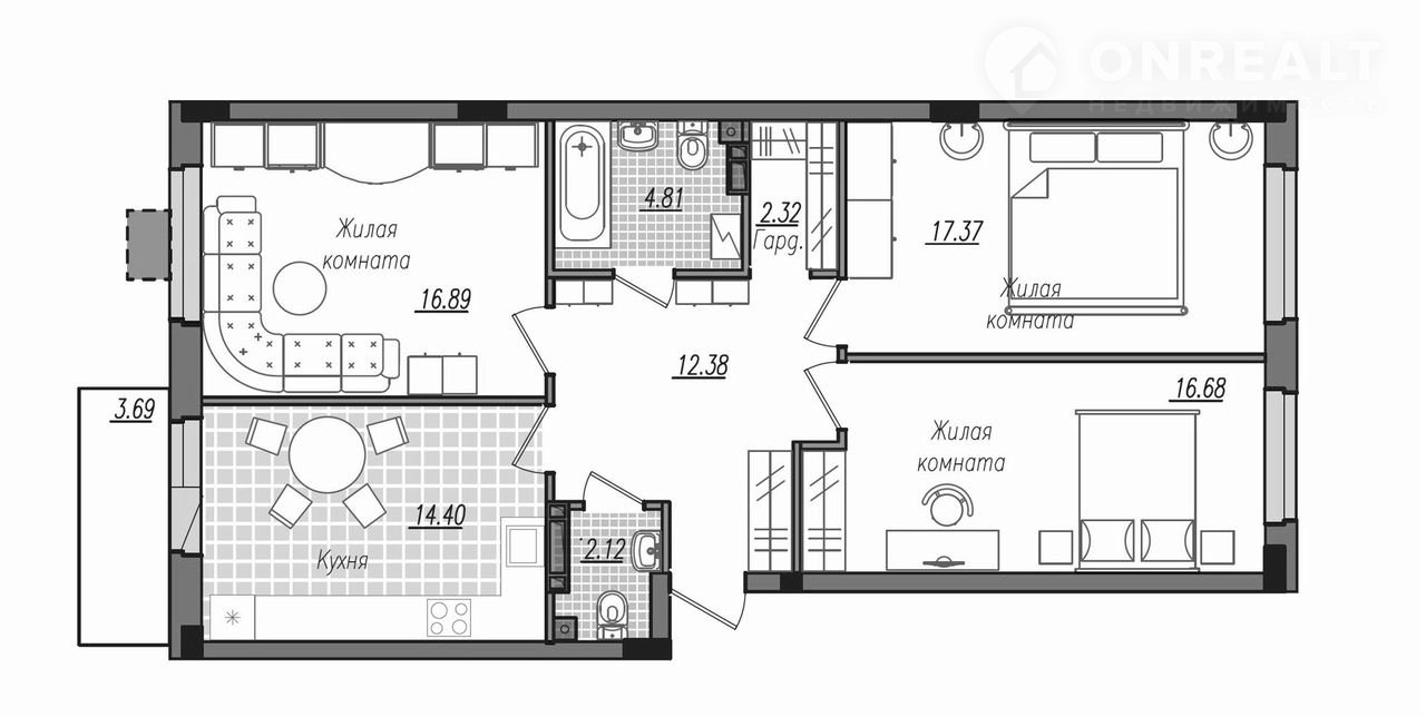 Количество комнат 3