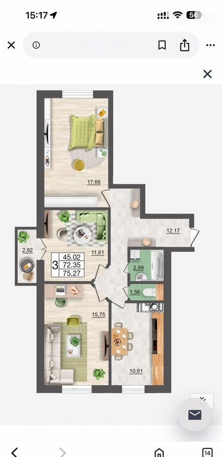 Количество комнат 3