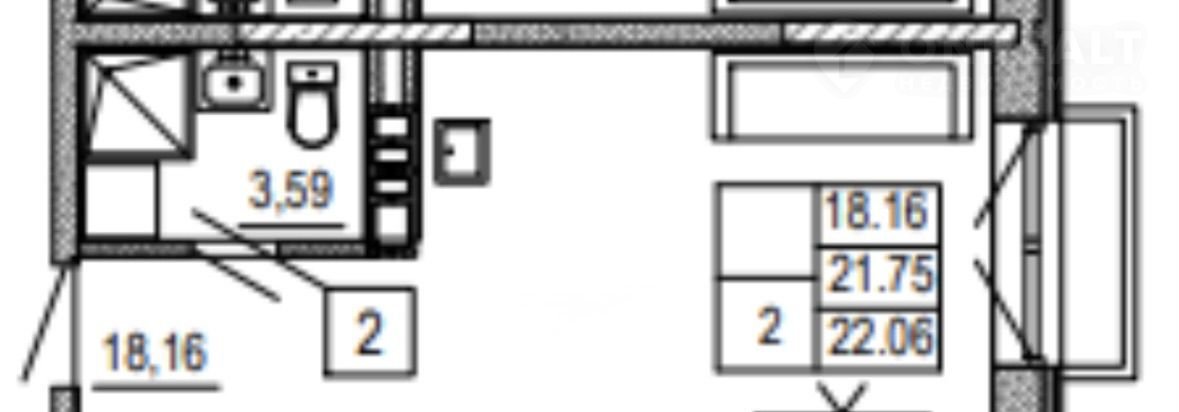 Общая площадь 22.8 м2