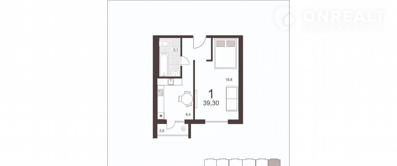 Общая площадь 39.3 м2