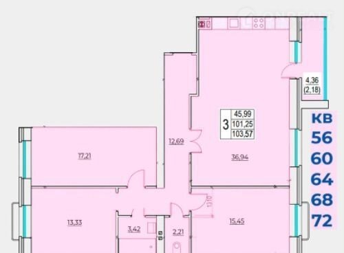 Общая площадь 103.6 м2