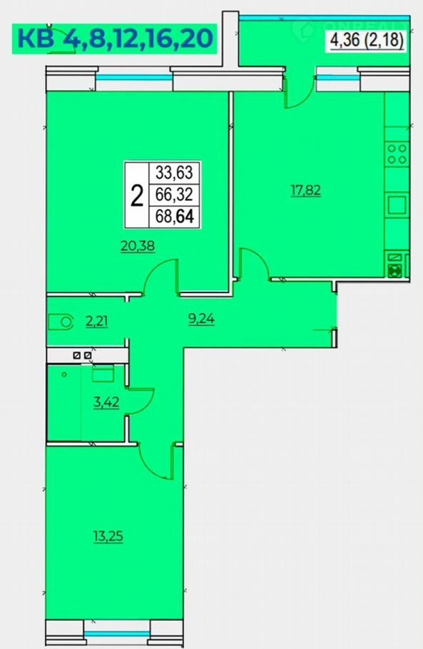 Общая площадь 68.6 м2