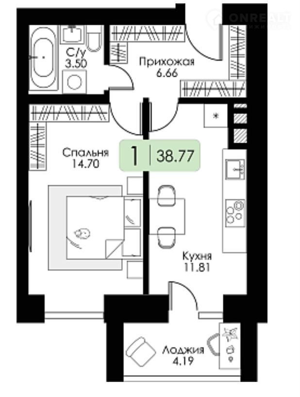 Общая площадь 38.9 м2