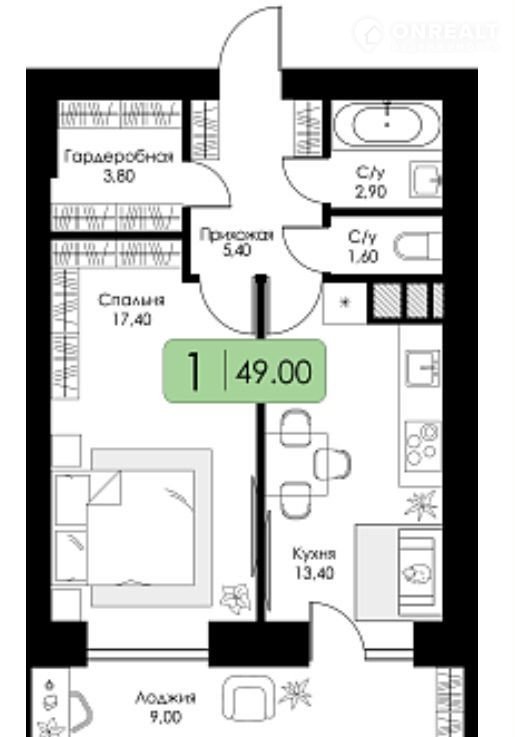 Общая площадь 49 м2