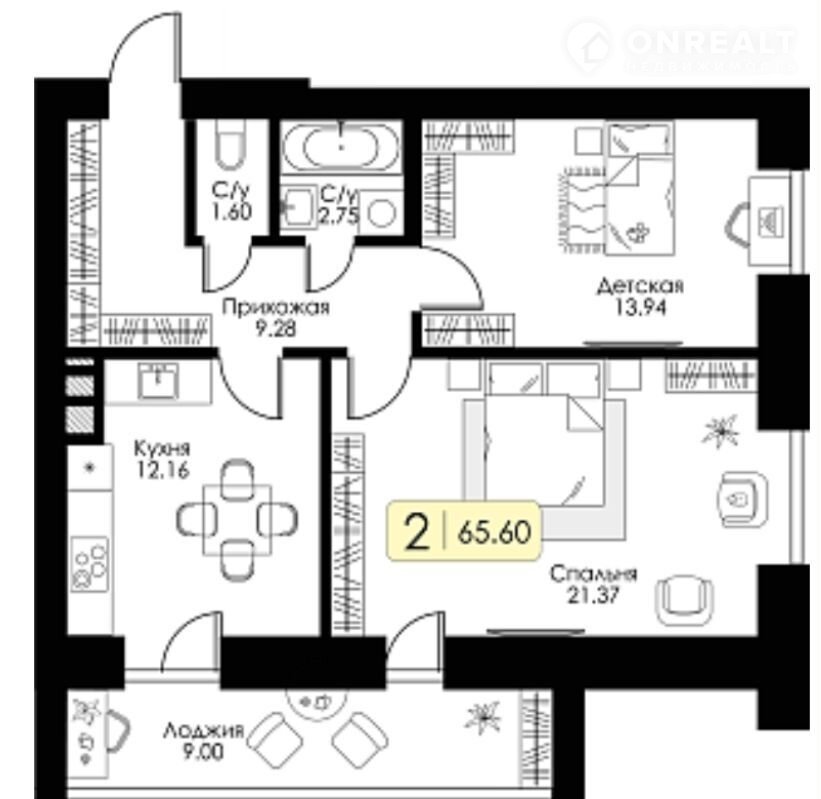 Общая площадь 65.6 м2