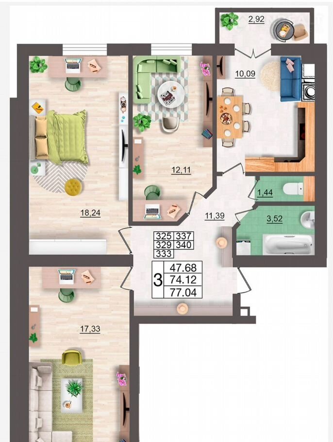 Общая площадь 77 м2