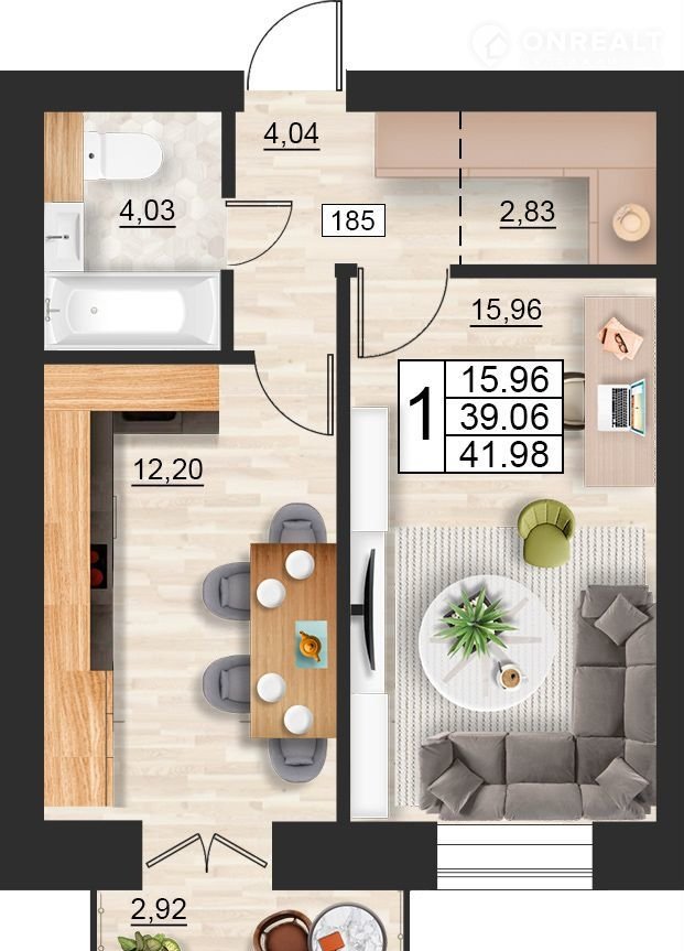 Общая площадь 42 м2