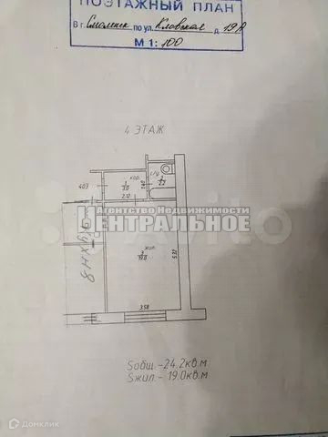1-комнатная квартира, 24 м2, этаж 5 / 5, на продажу в Смоленске, Кловская улица, 19А