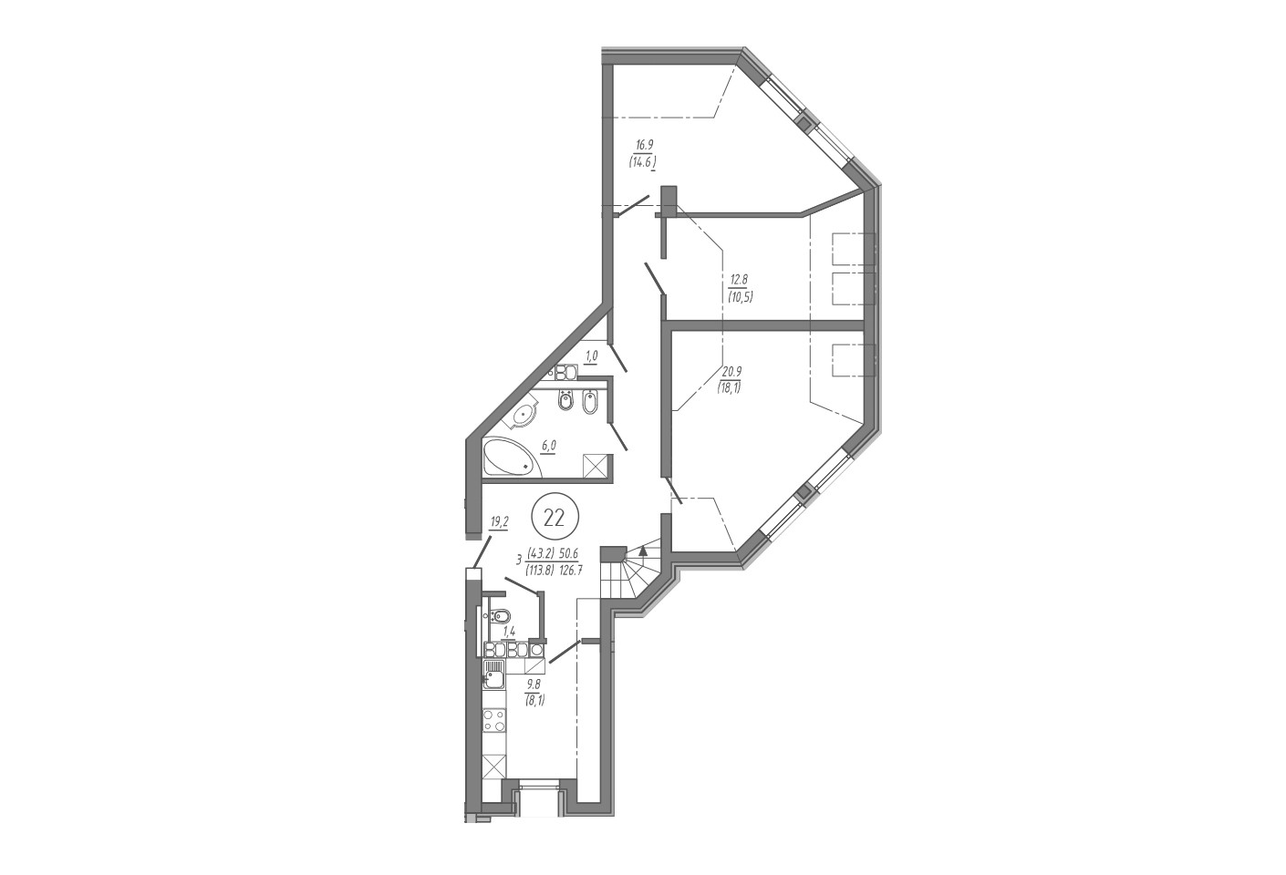 Общая площадь 127 м2