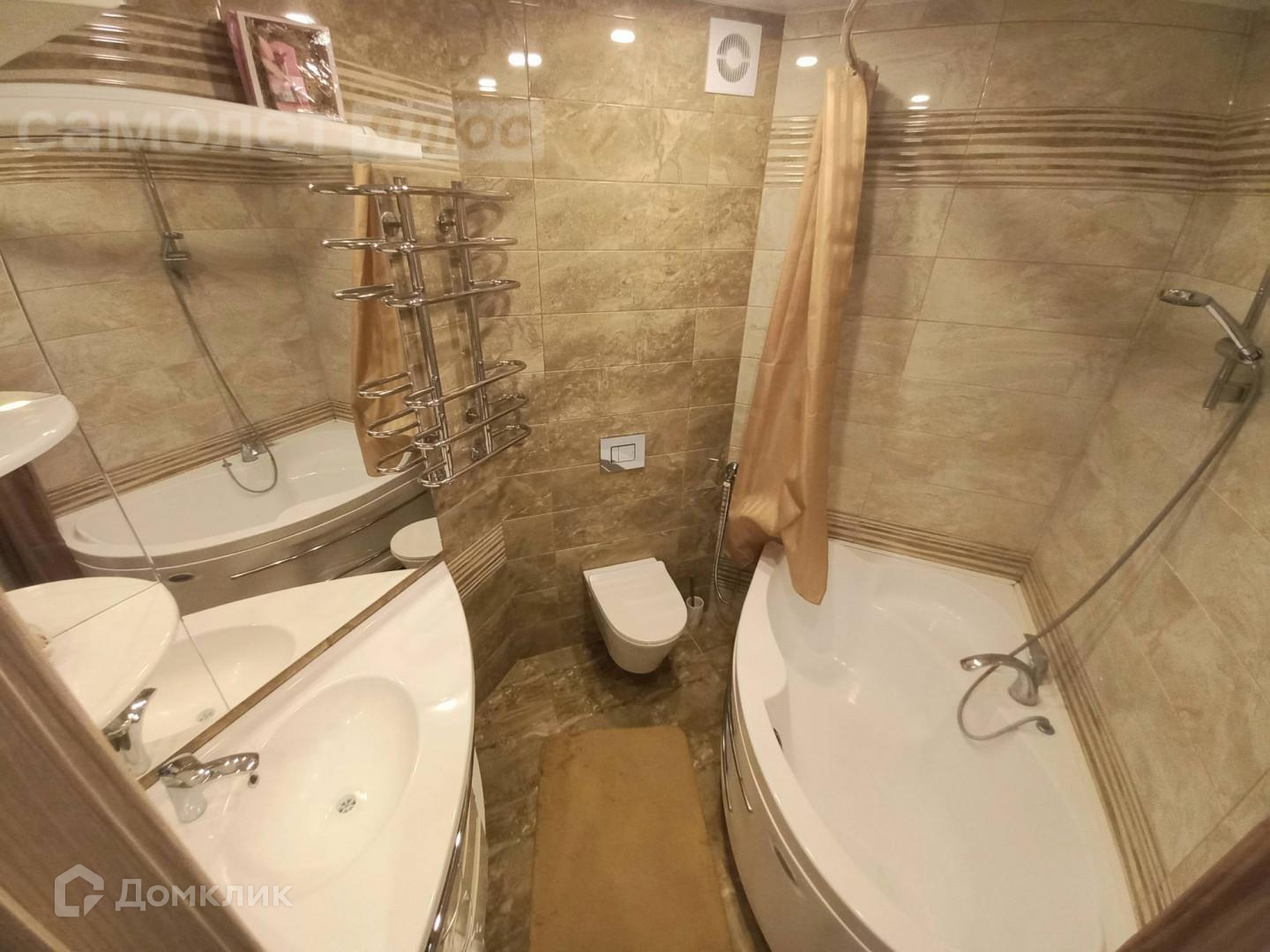 - Весь сан узел в плитке;