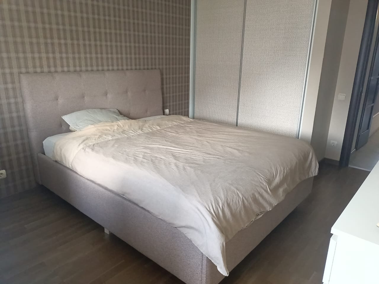 Ремонт был сделан с любовью, для себя, с использованием хороших и очень хороших отделочных материалов. Пол - штучный паркет и паркетная доска в жилых комнатах, плитка - в кухне, прихожей, ванной и санузле. В ванной и санузле на стенах также плитка. Кухня - массив ясеня (остаётся будущим хозяевам квартиры). Встроенные шкафы и рабочее место в спальне также ждут своих новых владельцев)