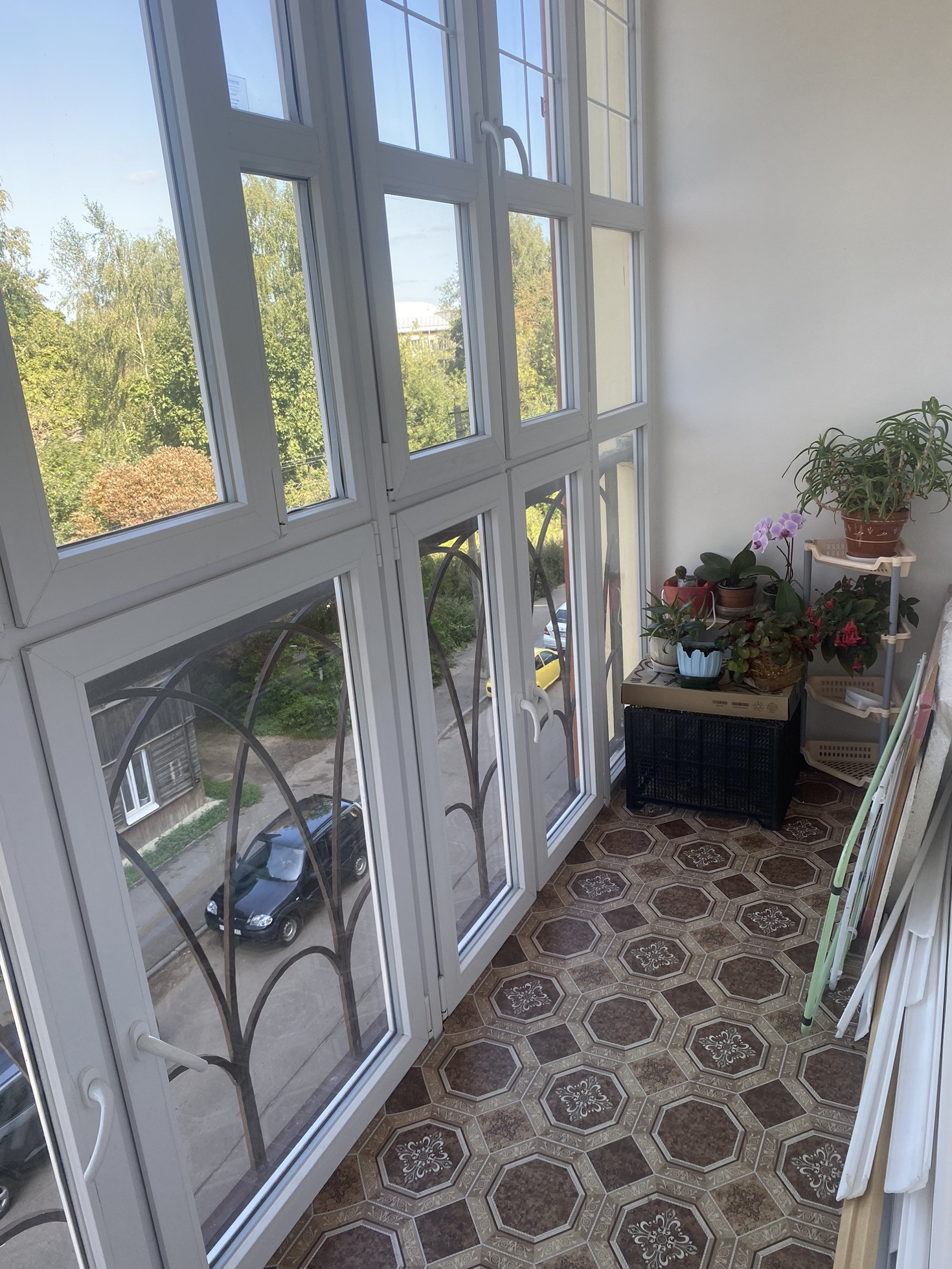 Фото реальные. Огромная лоджия с панорамными окнами.