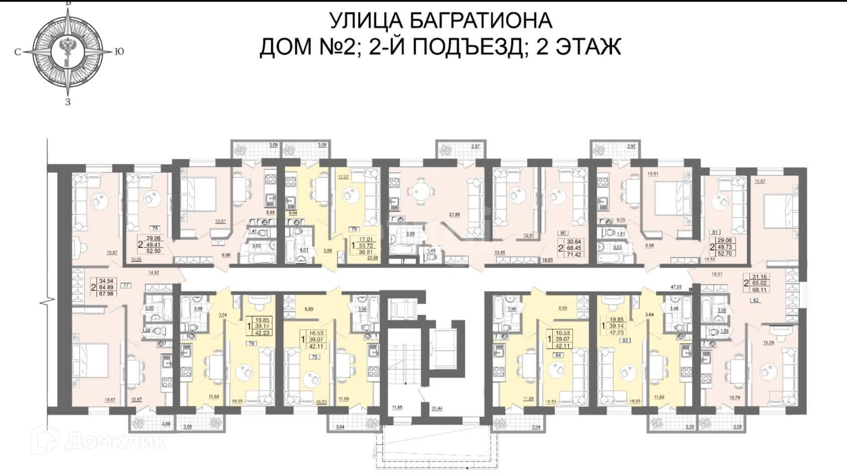 1-комнатная квартира, 42.3 м2, этаж 2 / 10, на продажу в Смоленске, улица Багратиона, 26А
