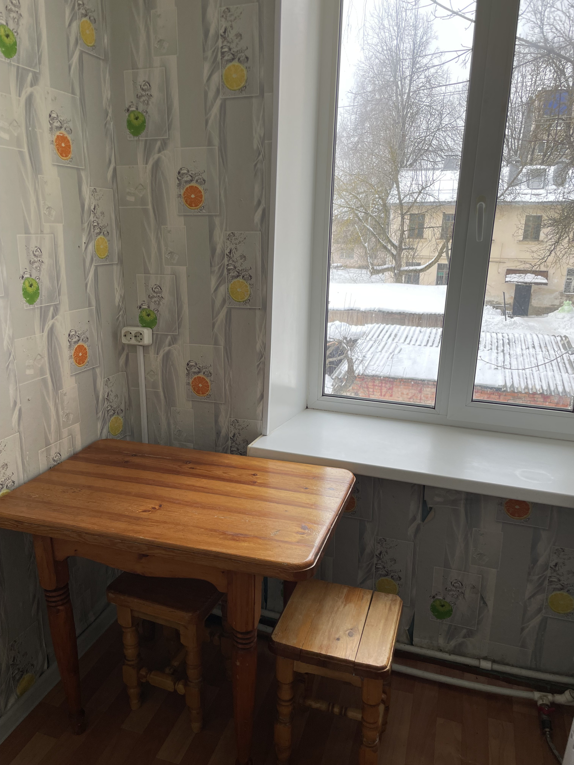 Окна пластиковые выходят во двор дома.