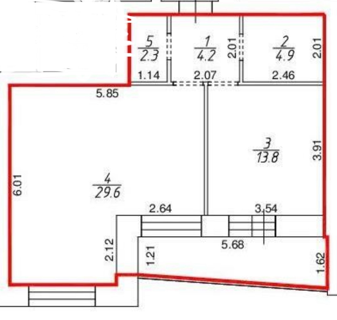 Общая площадь 54.8 м2
