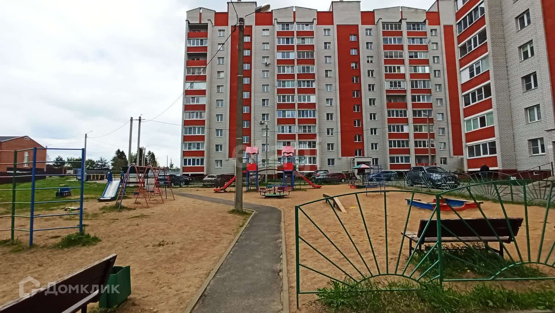 Во дворе есть детская площадка и много парковочных мест.